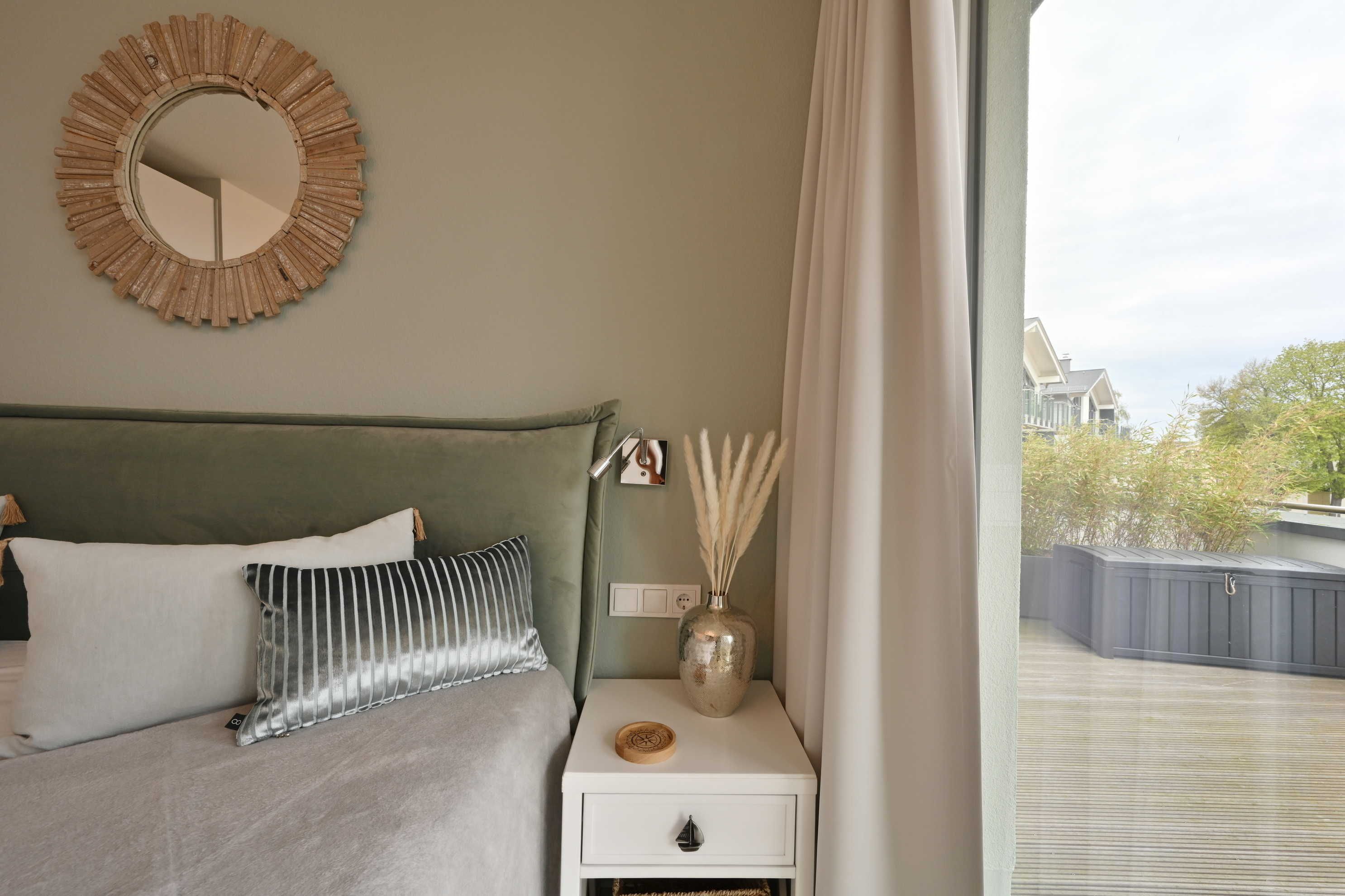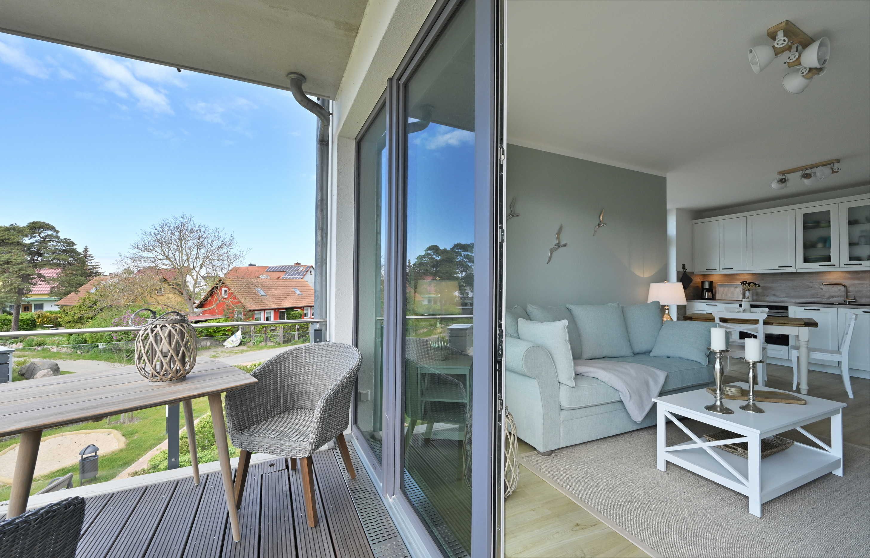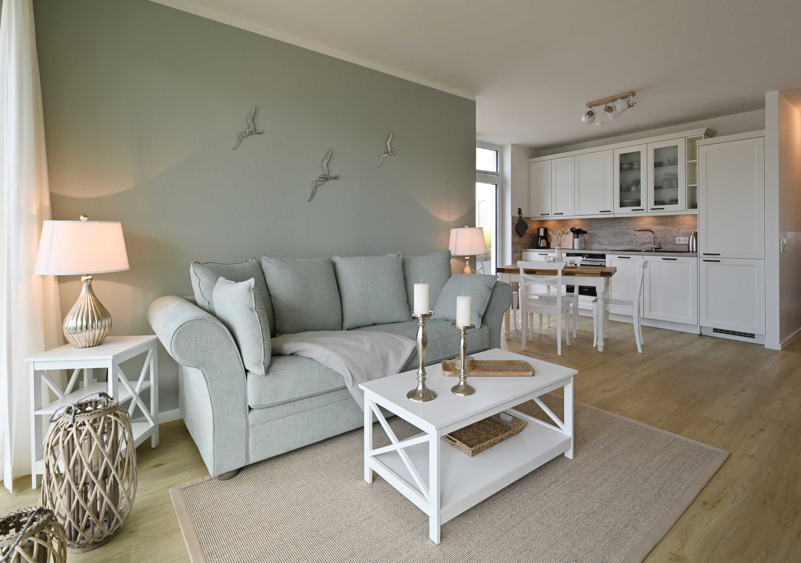Die nigelnagelneue Ferienwohnung Waveside hat alles was das Urlaubsherz begehrt - zwei Schlafzimmer mit je einem Doppelbett (durchgehende Matratzen), ein Bad mit Dusche, ein Gäste-WC, ein Wohnzimmer mit Kamin und integrierter Küche. Auf dem Balkon oder der riesigen Dachterrasse genießen Sie die Nähe zum Meer. Die Ostsee und der weiße Sandstrand sind nur zwei Gehminuten entfernt.