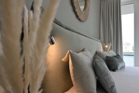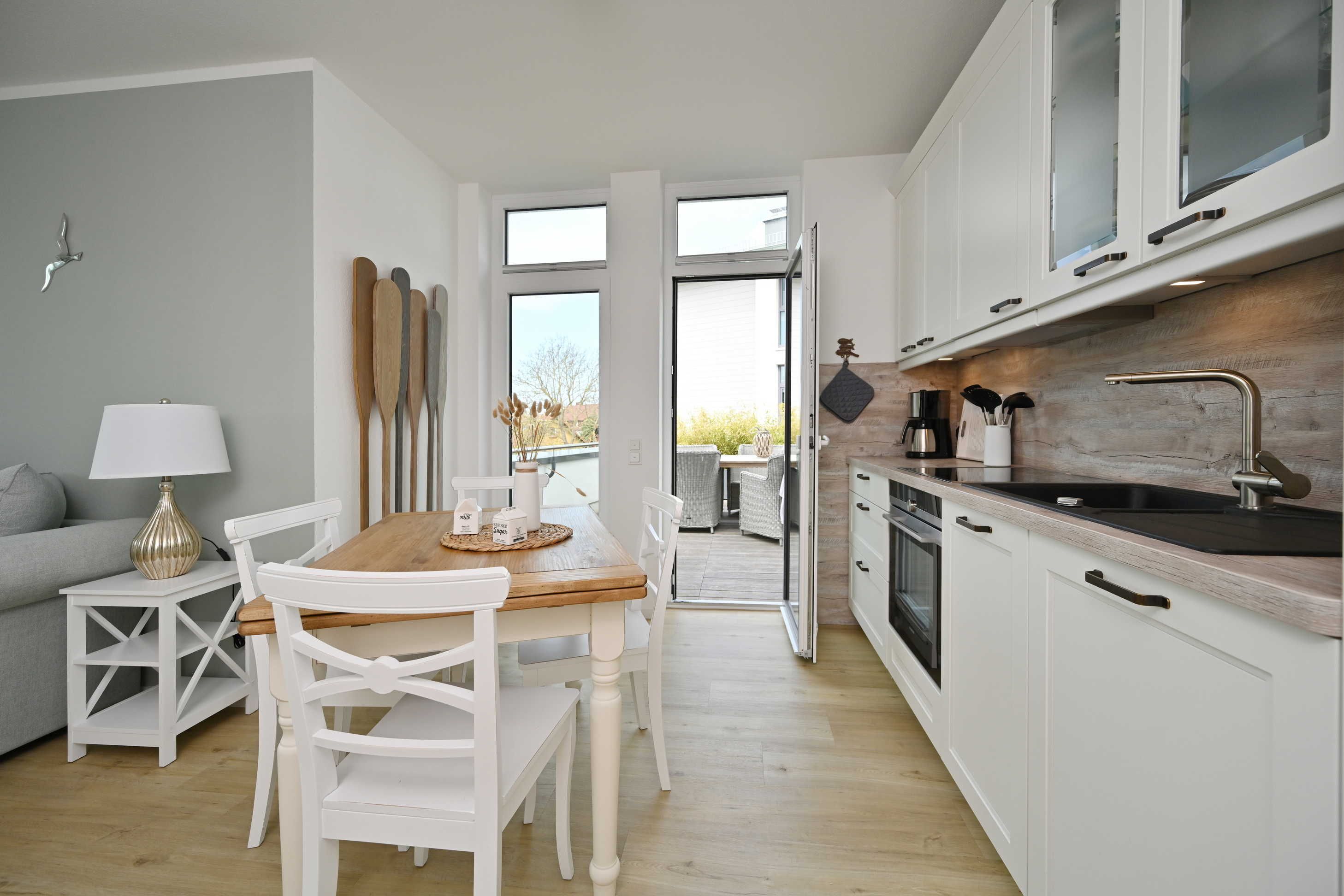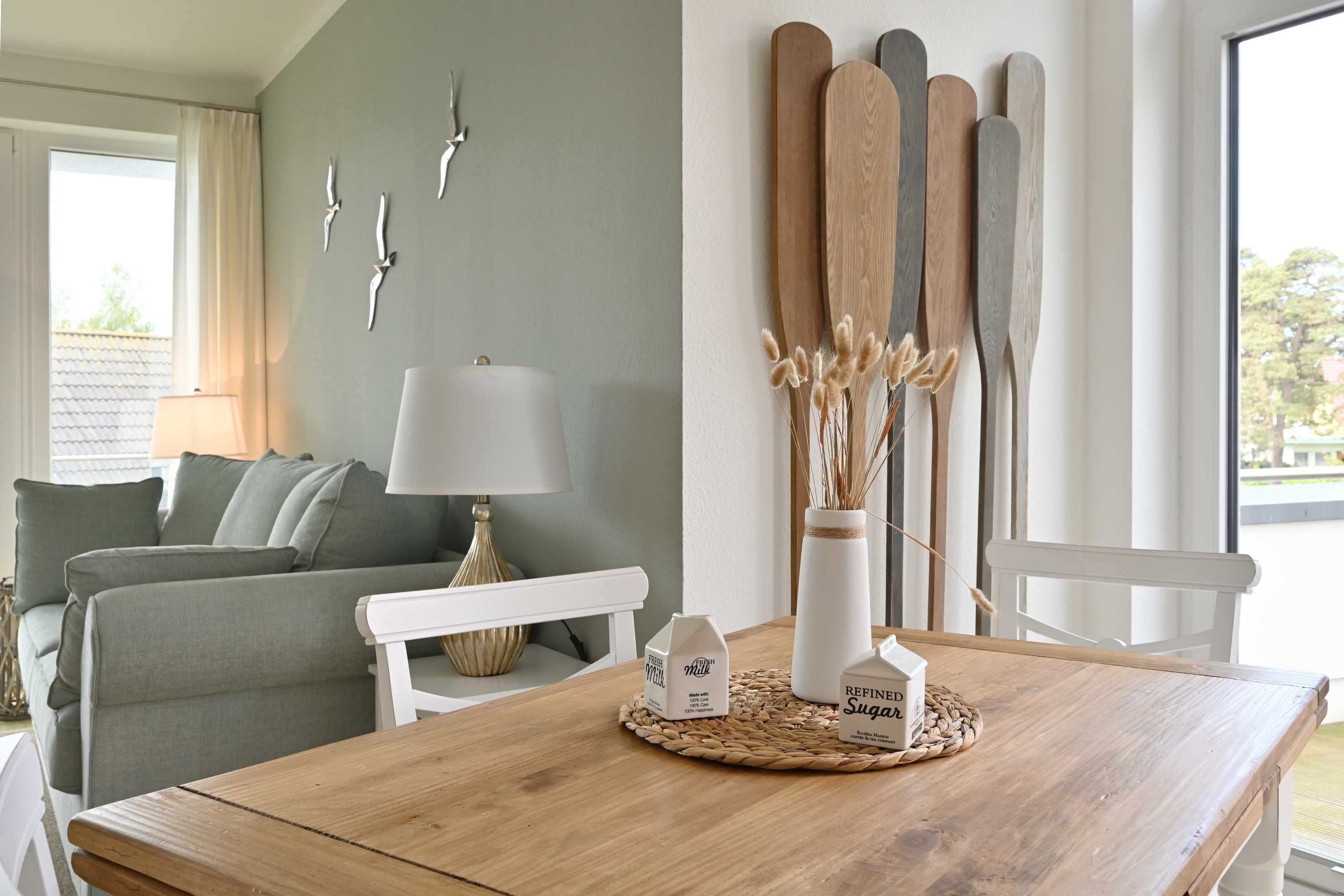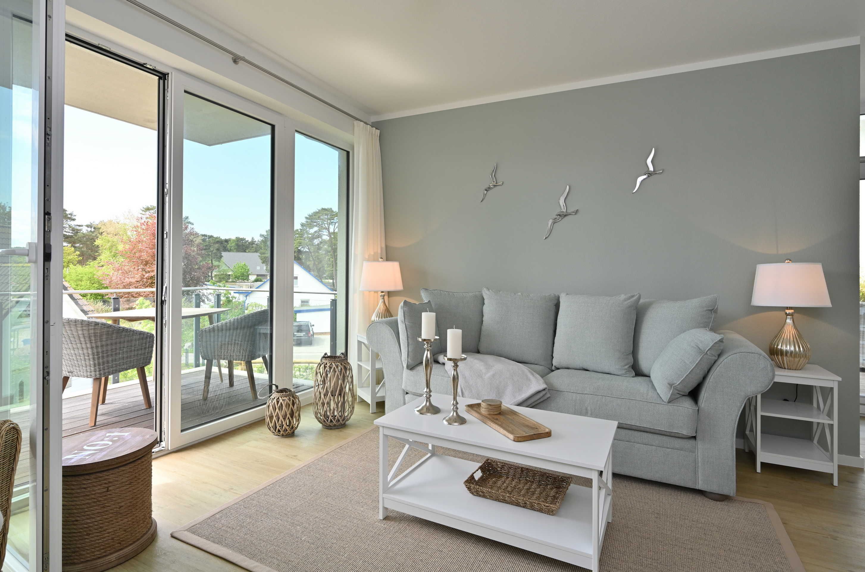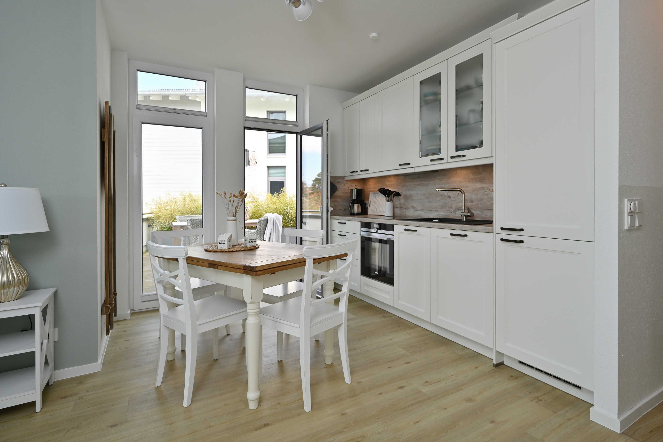 Die nigelnagelneue Ferienwohnung Waveside hat alles was das Urlaubsherz begehrt - zwei Schlafzimmer mit je einem Doppelbett (durchgehende Matratzen), ein Bad mit Dusche, ein Gäste-WC, ein Wohnzimmer mit Kamin und integrierter Küche. Auf dem Balkon oder der riesigen Dachterrasse genießen Sie die Nähe zum Meer. Die Ostsee und der weiße Sandstrand sind nur zwei Gehminuten entfernt.