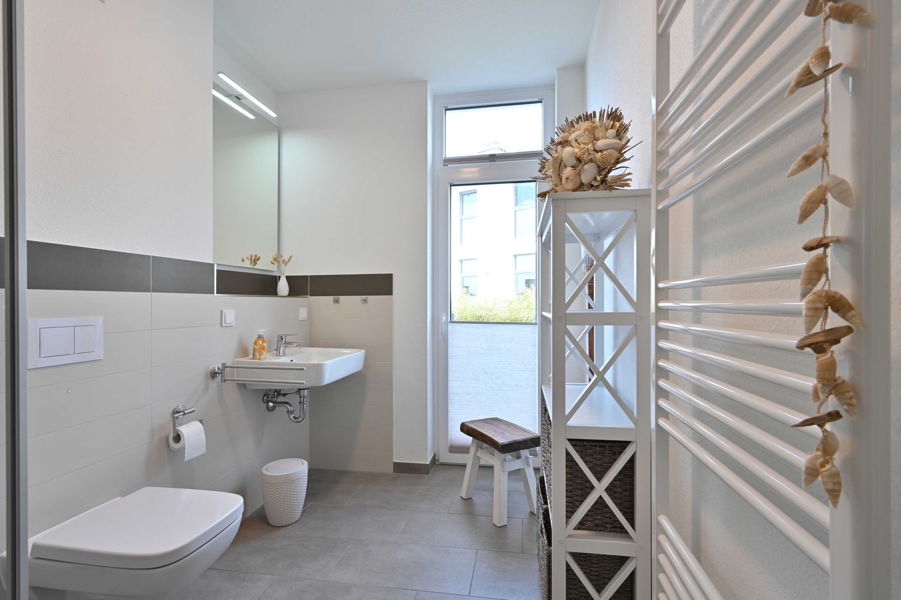 Zur Wohnung gehört ein Tiefgaragenstellplatz. Von dort gelangen Sie mit Hilfe eines Aufzugs direkt bis zum Waveside. Ihre Drahtesel parken sicher im abschließbaren Fahrradraum. Im Gebäude befinden sich außerdem eine Gemeinschaftssauna zur kostenfreien Nutzung sowie ein Waschsalon mit Waschmaschine und Trockner (kostenpflichtig).