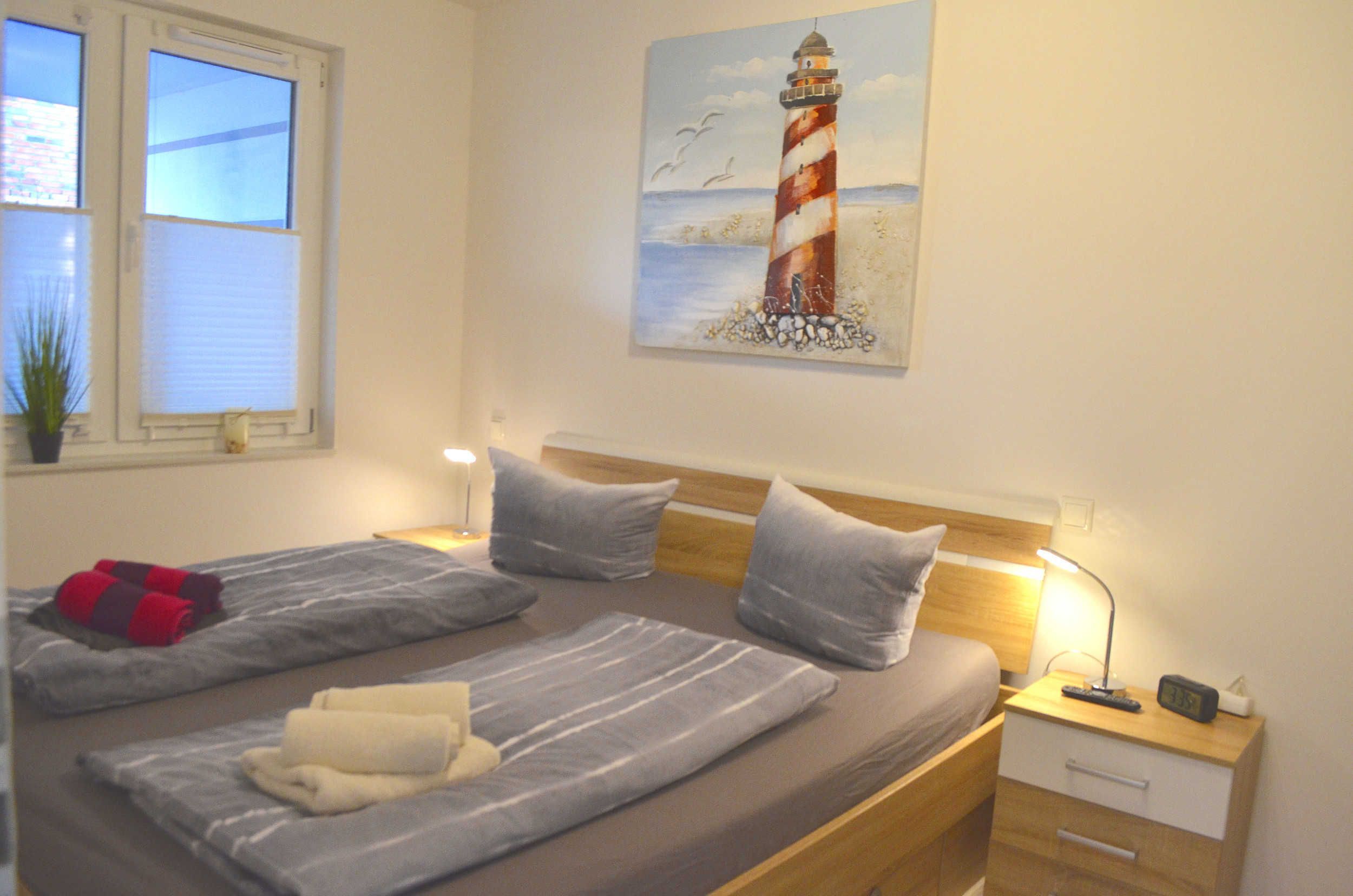 Es gibt ein separates Schlafzimmer, mit Fenster zur Terrasse und einem Doppelbett (1,80 m x 2,00 m). Auch hier können Sie ausgiebig entspannen, vielleicht sogar mal etwas Fernsehen im Bett? -  Kein Problem, der Flat-TV (internetfähig) hängt an der Wand bereit.