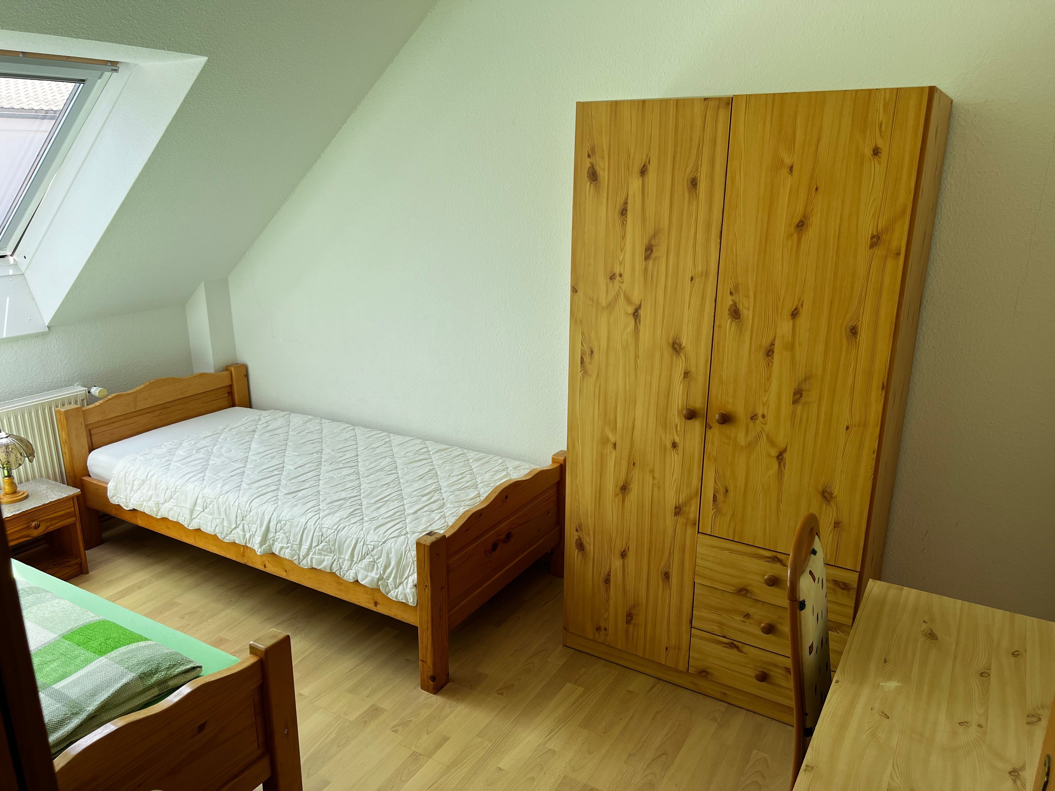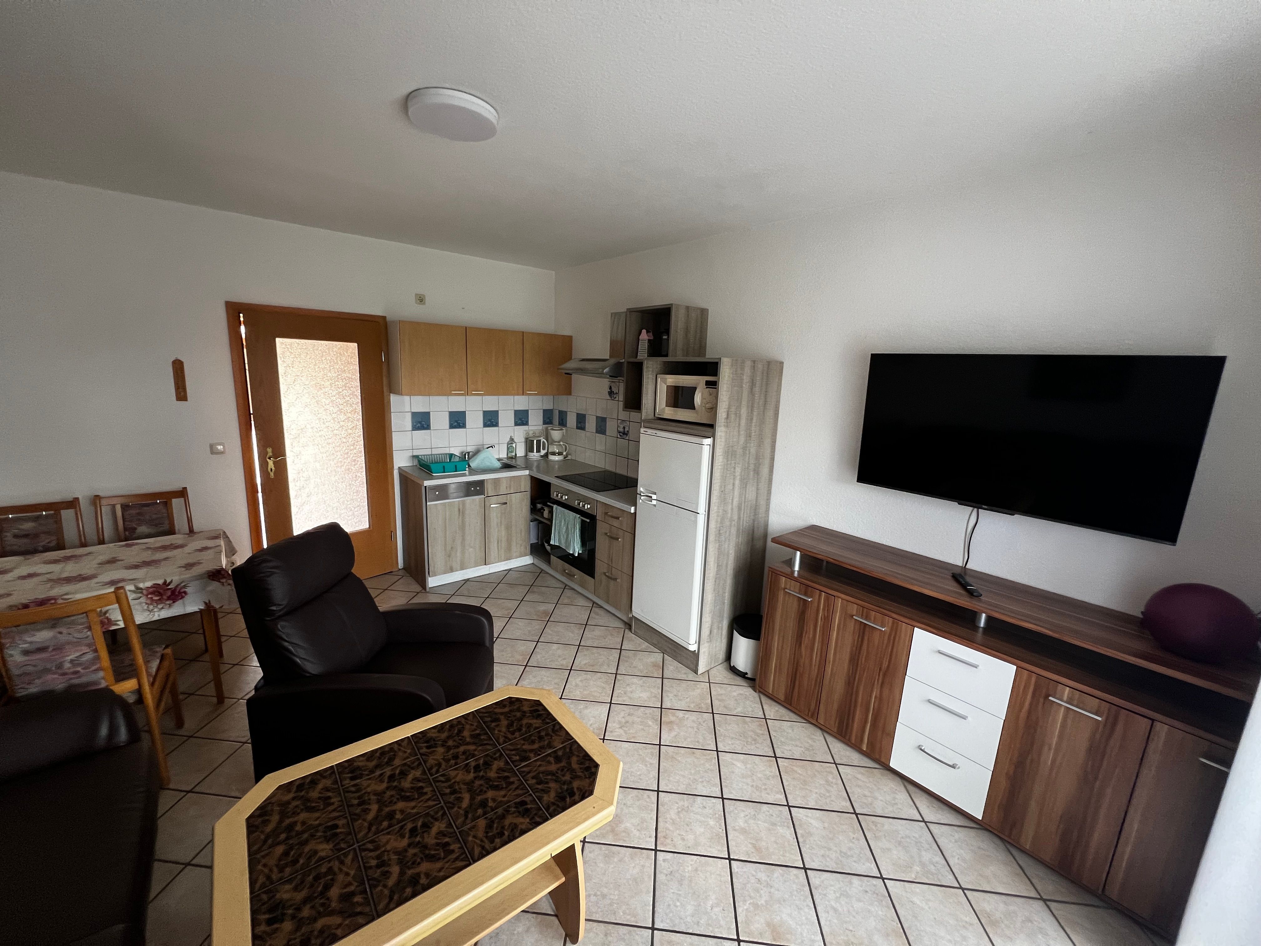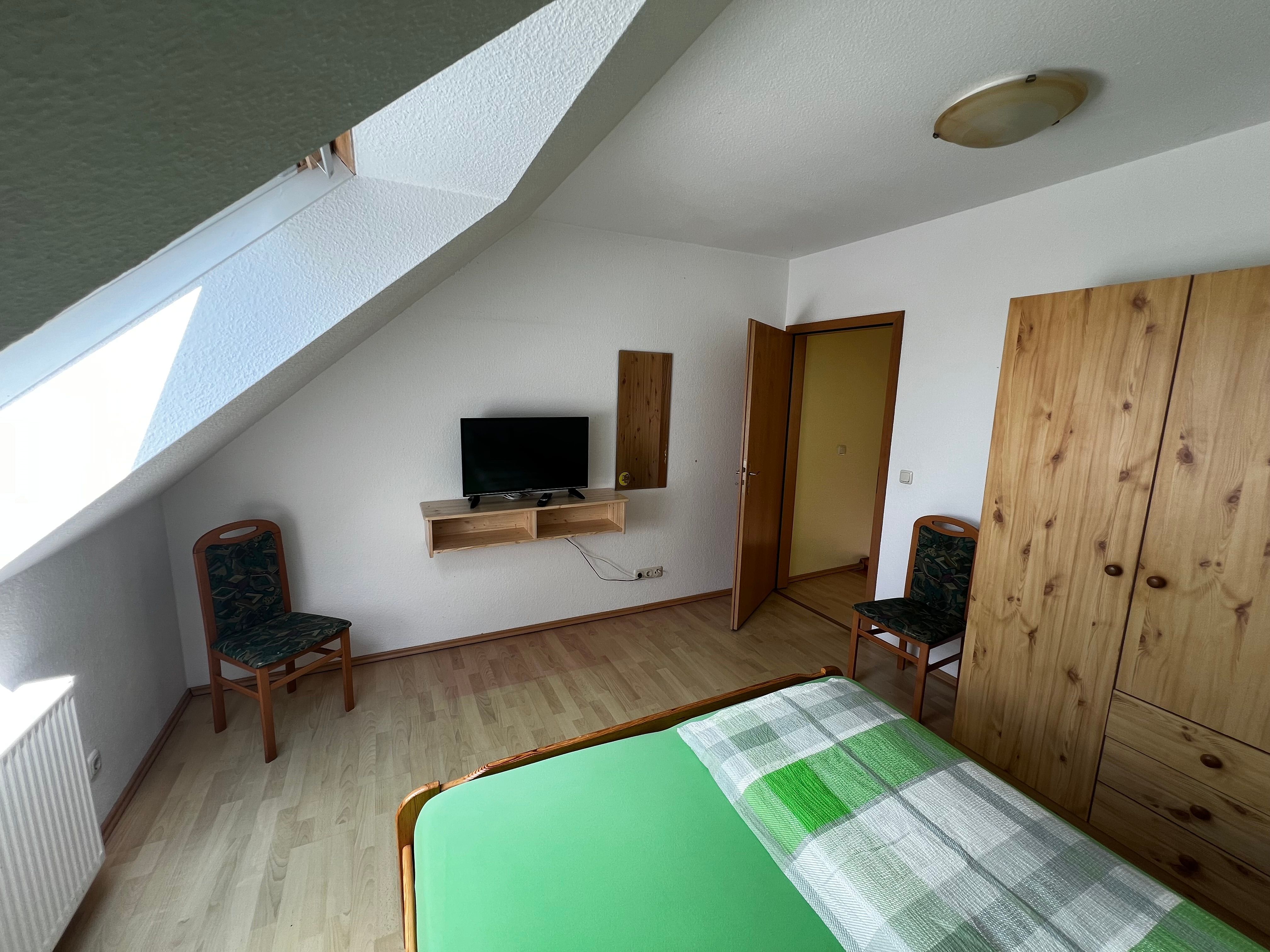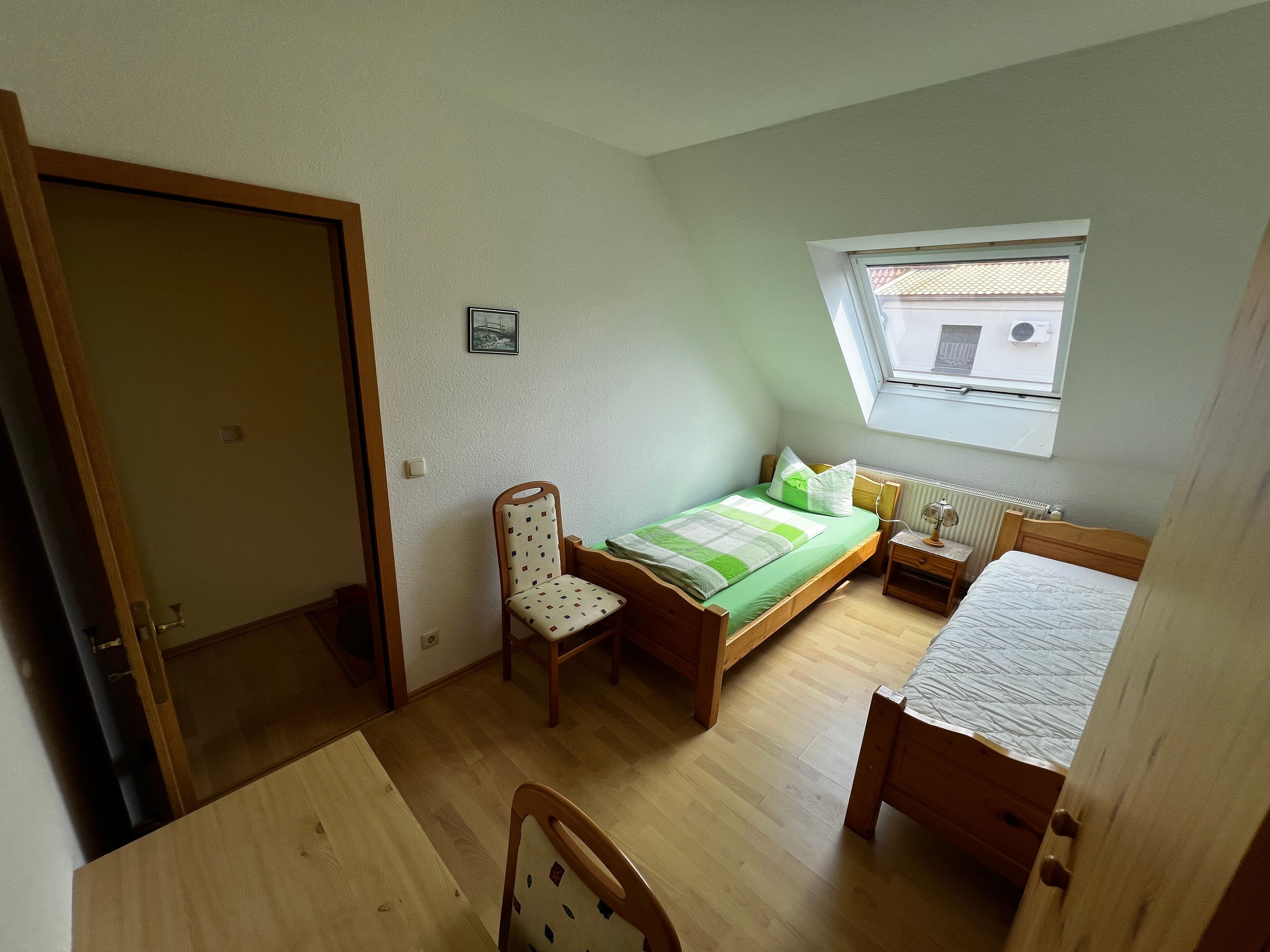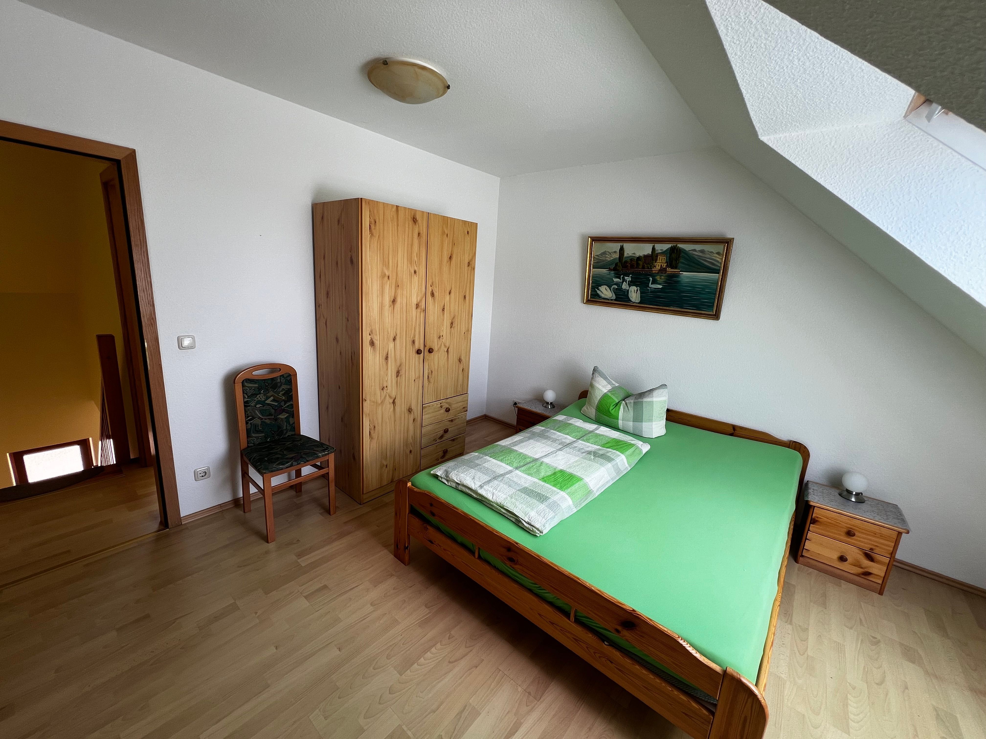 FeWo für max. 4 Personen, ca. 55 m², auf 2 Etagen, separater Eingang, im EG Wohnraum mit Essecke und Kochnische, Dusche, WC, im OG 2 Schlafräume, Sat-TV, möblierte Terrasse,