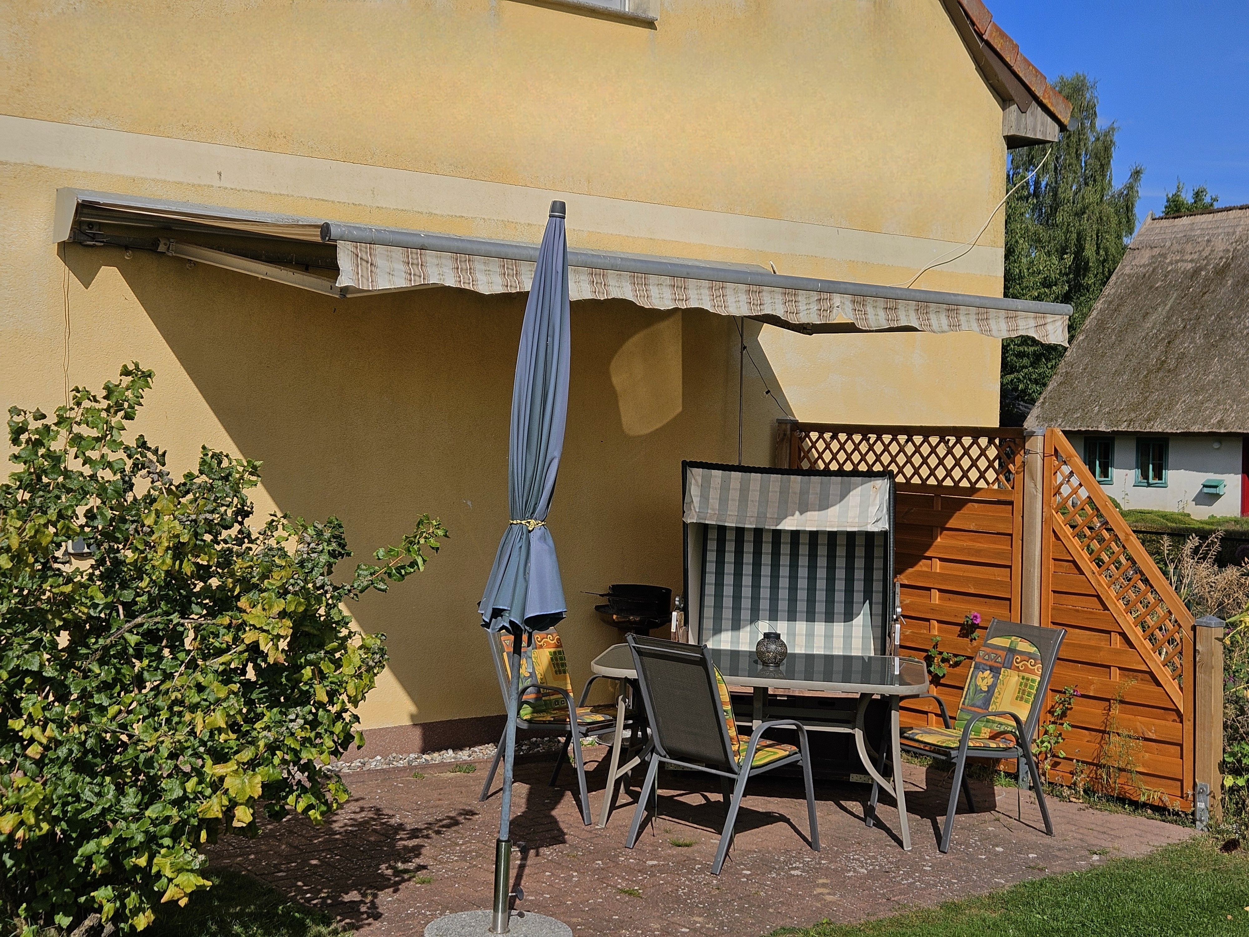 Am Ortsrand gelegen, absolut ruhig und idyllisch, können Sie hier ausspannen und die Ruhe genießen. Die Terrasse in Südlage mit Blick auf das Stettiner Haff und eigener Liege- und Spielwiese laden zum Verweilen ein. Es steht hier ein Holzkohlegrill, sowie eine Feuerschale für gemütliche Abende für Sie bereit. Ein Sandkasten für die Kleinen ist ebenfalls vorhanden.Das große lichtdurchflutete Wohnzimmer mit Esstisch, bietet auch Regentagen genügend Patz. Im großen Schlafzimmer befindet sich ein gemütliches Doppelbett (200cm x 180cm) und im kleinen Schlafzimmer befinden sich zwei Einzelbetten (200cm x 90cm). Für die fünfte Person steht im großen Schlafzimmer ein Klappbett bereit (200cm x 90cm), welches einem vollwertigem Bett entspricht.