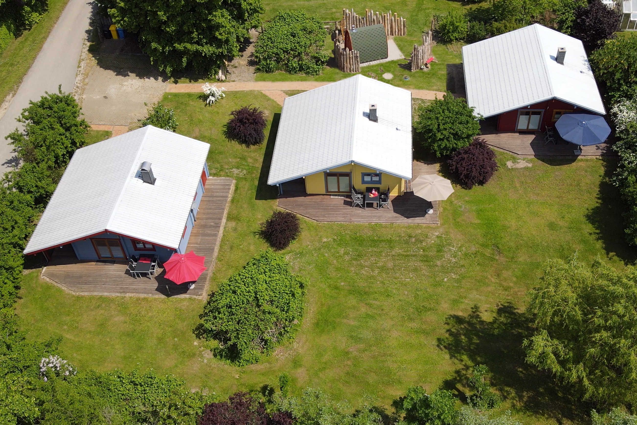 Der kleine Ferienpark mit 3 Holzhütten und einer Podsauna liegt am Rand des kleinen Dörfchens Brusow, einem Ortsteil der Kleinstadt Kröpelin.