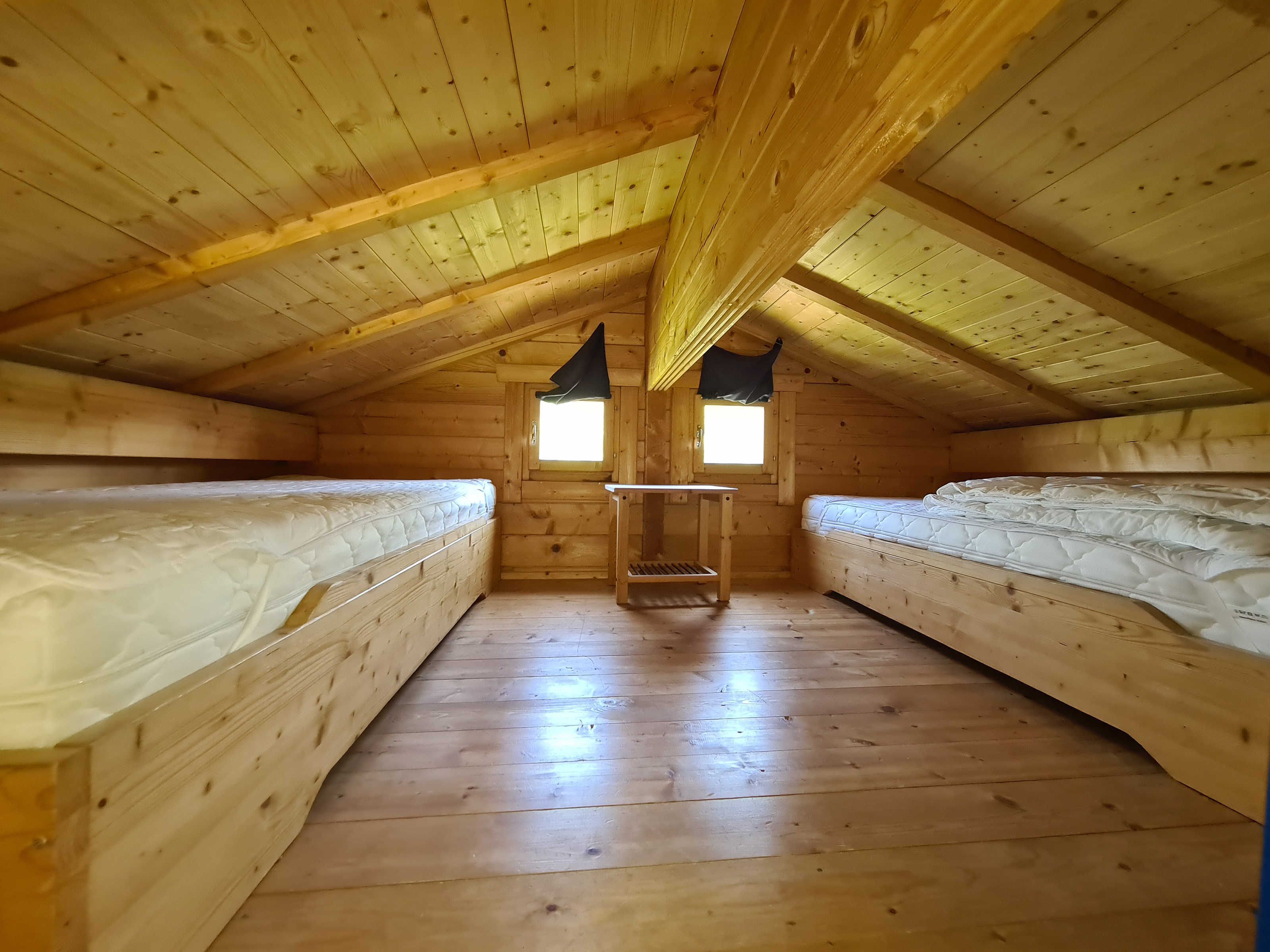 1 SZ mit 1,60 Doppelbett, ein SZ mit zwei 0,90 x 2 m Einzelbetten; Schlafboden ( keine Stehhöhe ) zwei 0,90 x 2 m Einzelbetten