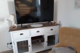 Erdgeschoß: jeweils ein offener Wohn/Essbereich mit Kamin, Sitzecke (Fernseher), Eßecke und integrierte Küche mit Geschirrspüler, Kühlschrank mit Gefrierfach, Herd, Backofen, Wasserkocher und Kaffeemachine.