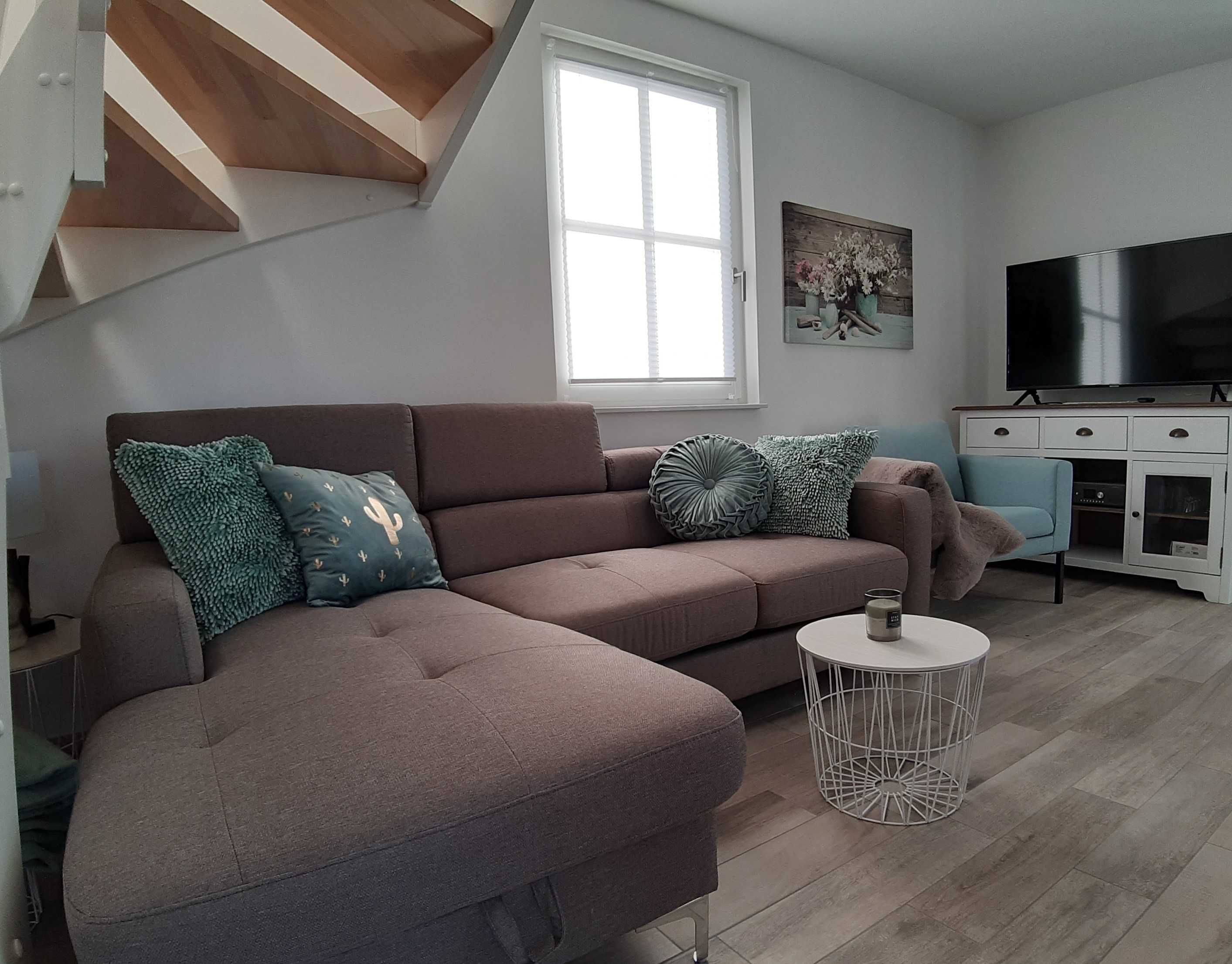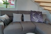 Die Schlafsofas im Wohnzimmer sind mit wenigen Handgriffen in komfortablen Betten für jeweils 1-2 Personen zu verwandeln.