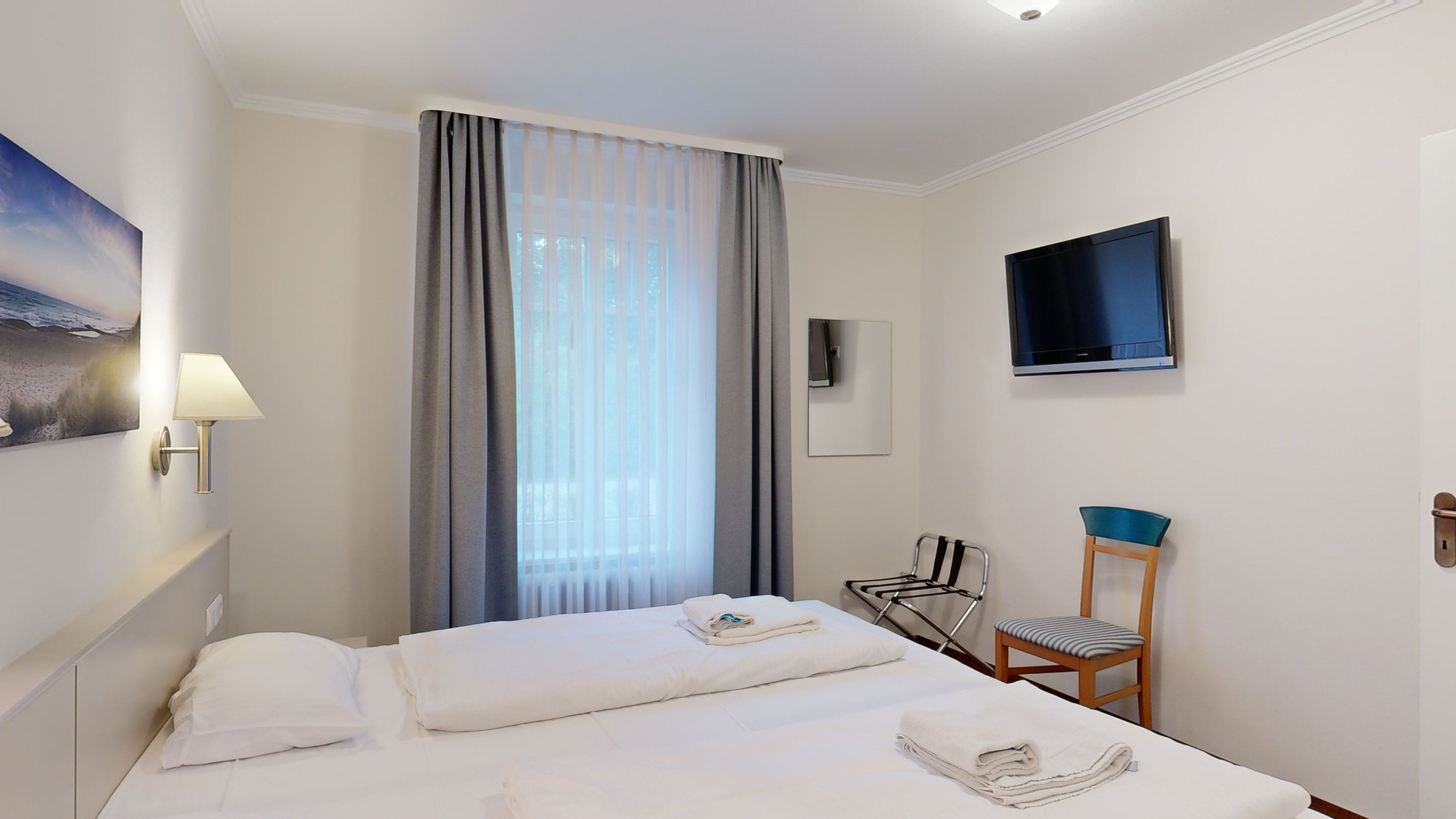 1 Schlafzimmer mit einem Doppelbetten (1,80 m breit), Zusatz-TV, Safe