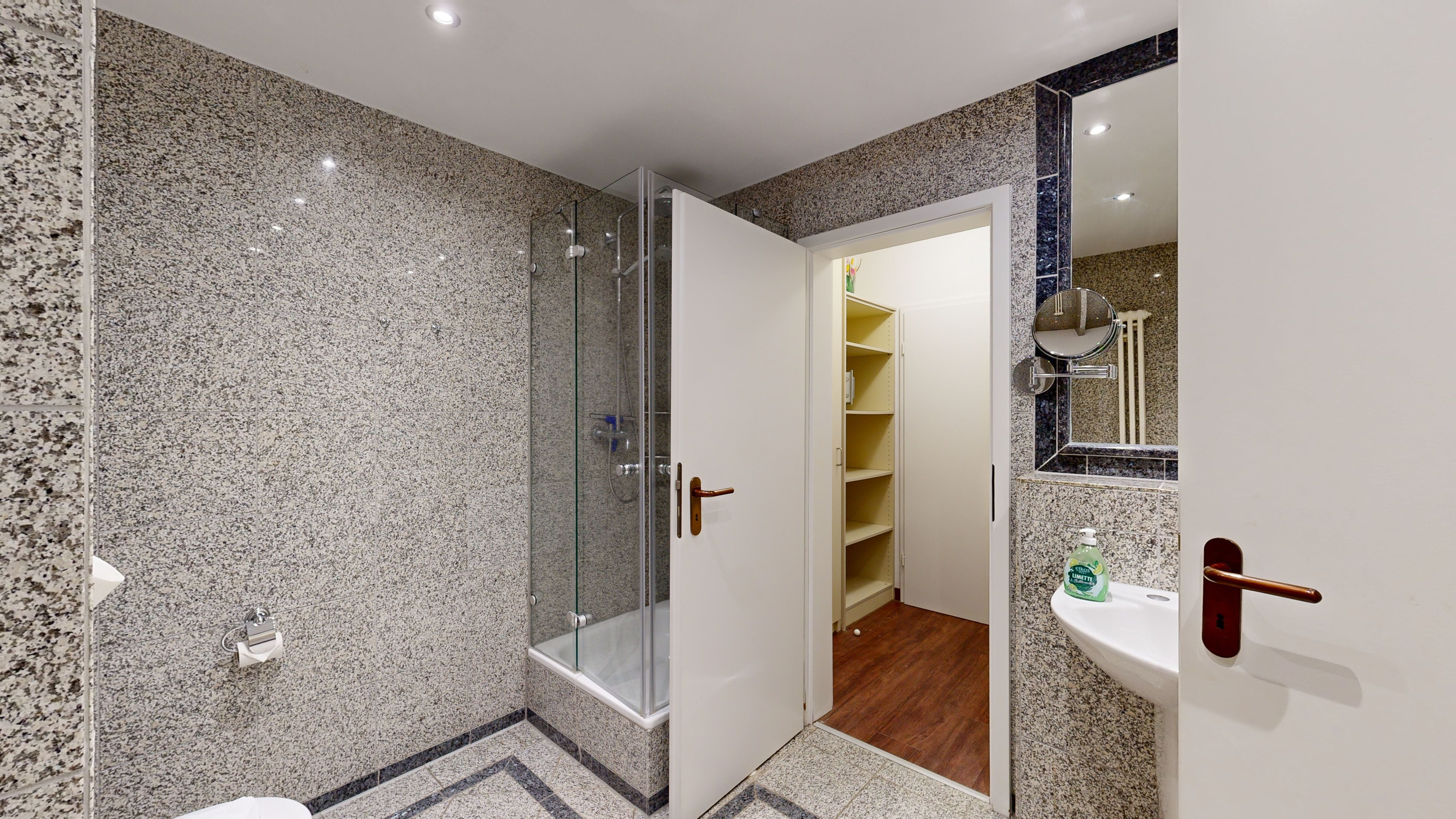 1 großes Badezimmer mit Dusche, WC, Föhn
