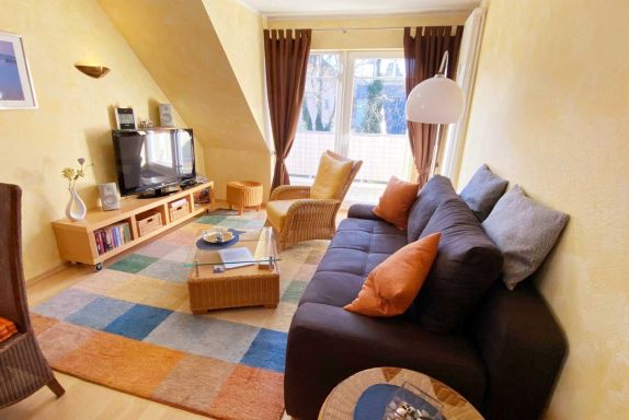 Nur 350m vom Strand entfernt liegt diese gemütlich und modern eingerichtete 2-Raum-Wohnung im Dachgeschoss mit ca. 43 m² Wohnfläche und einem sonnigen Südbalkon. Die sehr helle und freundliche Wohnung kann mit bis zu 3 Personen genutzt werden. Ein separate Schlafzimmer und eine gemütliche Couch bieten Platz für 3 Personen. Praktisch erreichbar befindet sich vor dem Objekt ein abschließbarer Außenabstellraum, der Platz für Fahrräder o.ä. bietet. WLAN steht Ihnen hier kostenlos zur Verfügung. Der Wohnung ist ebenso ein kostenloser Stellplatz Nr. 25 zugeordnet.