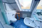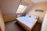 • Schlafzimmer: Doppelbett mit zwei Einzelmatratzen 90x200 m, Einbauschrank unter Schräge, Regale als Nachttische, Lampen, Tageslichtrollo am Dachflächenfenster
