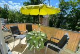 • Balkon: Südausrichtung mit Balkonumrandung als Sichtschutz, Tisch, Stühle, Sonnenschirm