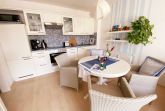 • Küche und Essbereich für 4 Personen, offen zum Wohnzimmer, komplett eingerichtete Einbauküche mit Backofen, Ceranfeld, Toaster, Kaffeemaschine, Wasserkocher, Kühlschrank mit Gefrierfach, Mikrowelle, Geschirrspüler