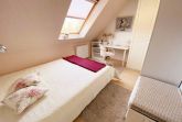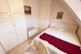 • Schlafzimmer: Doppelbett mit zwei Einzelmatratzen 80 x 200 m, Eckschrank, Lampen, Wohnteppich, Schreibtisch, Stuhl, leichte Schrägen