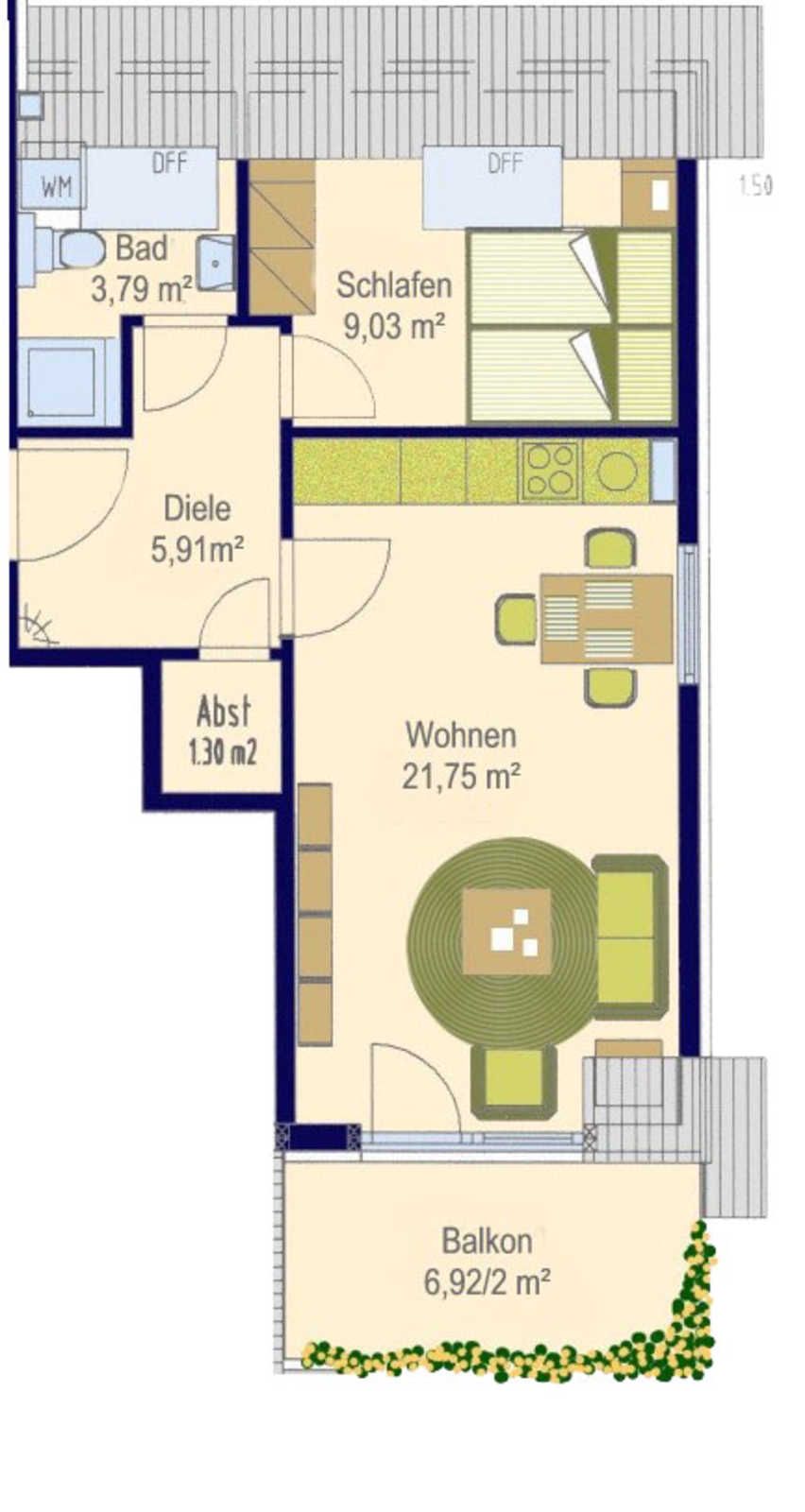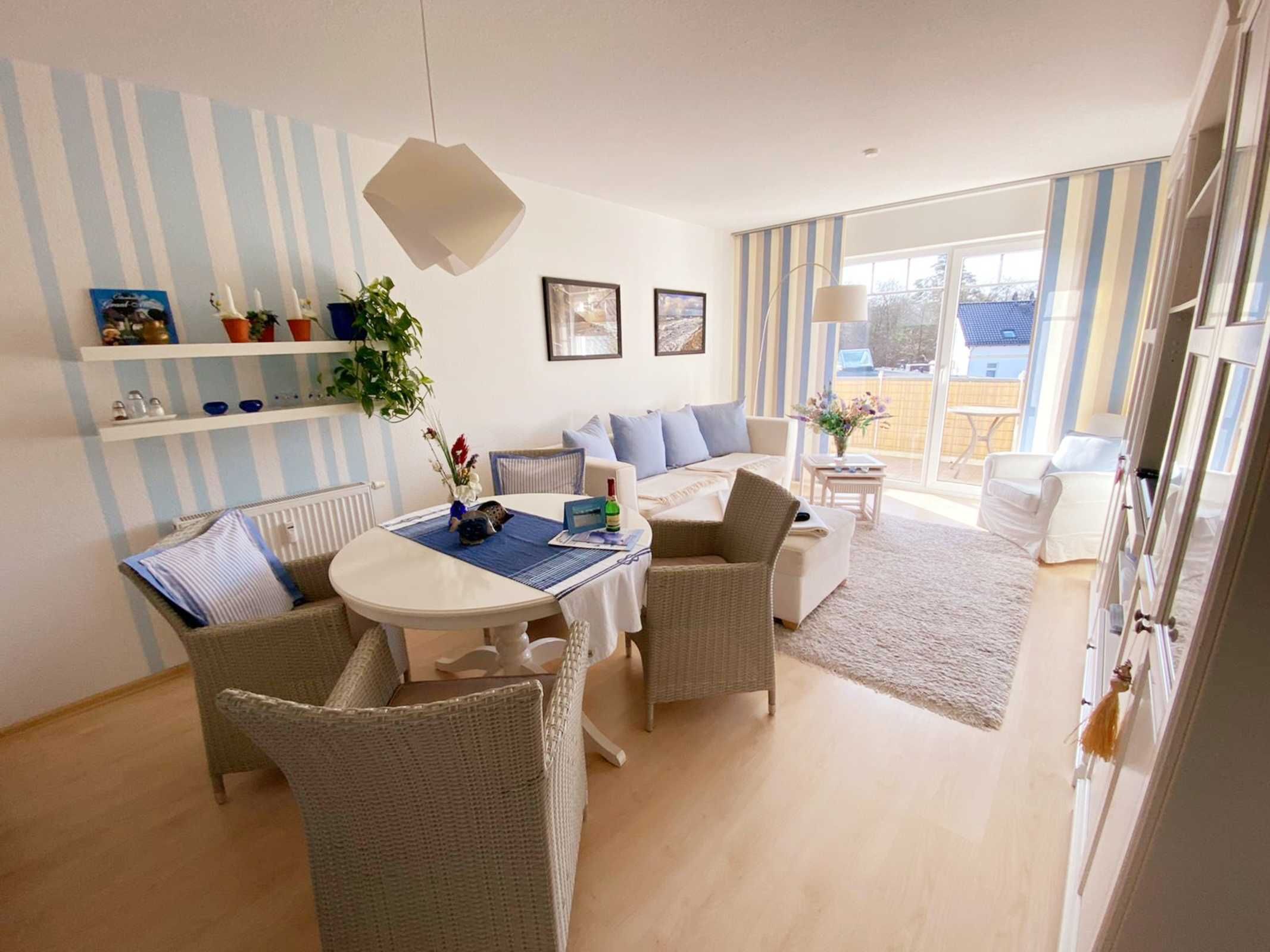 Nur 350m vom Strand entfernt liegt diese gemütlich und modern eingerichtete 2-Raum-Wohnung im DG mit ca. 45 m² Wohnfläche und einem sonnigen Südbalkon. Die sehr helle und freundliche Wohnung kann mit bis zu 2 Personen genutzt werden. Praktisch erreichbar befindet sich vor dem Objekt ein abschließbarer Außenabstellraum, der bis zu 2 Fahrrädern Platz o.ä. bietet. Der Wohnung ist ein kostenloser Stellplatz Nr. 14 zugeordnet.