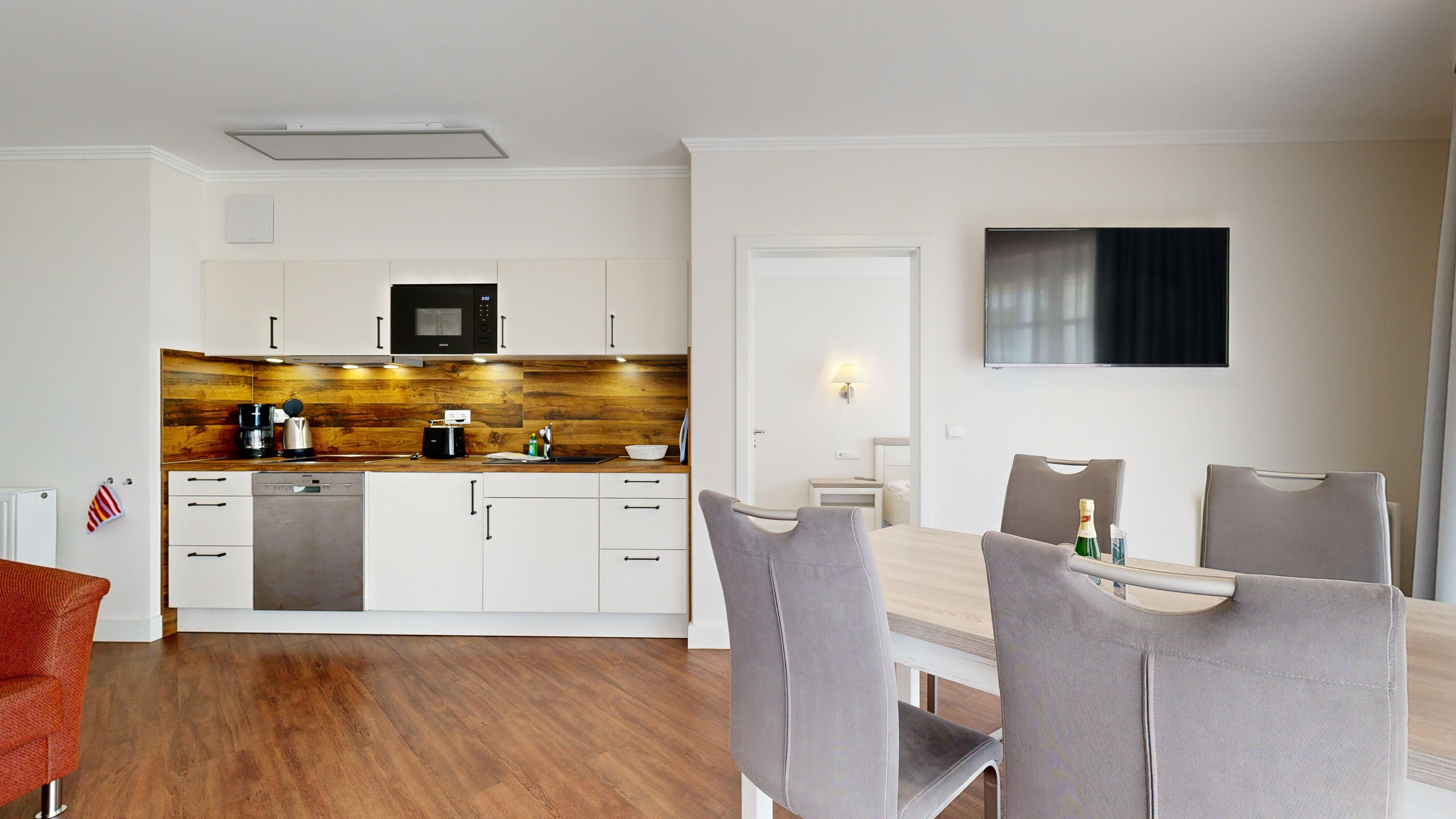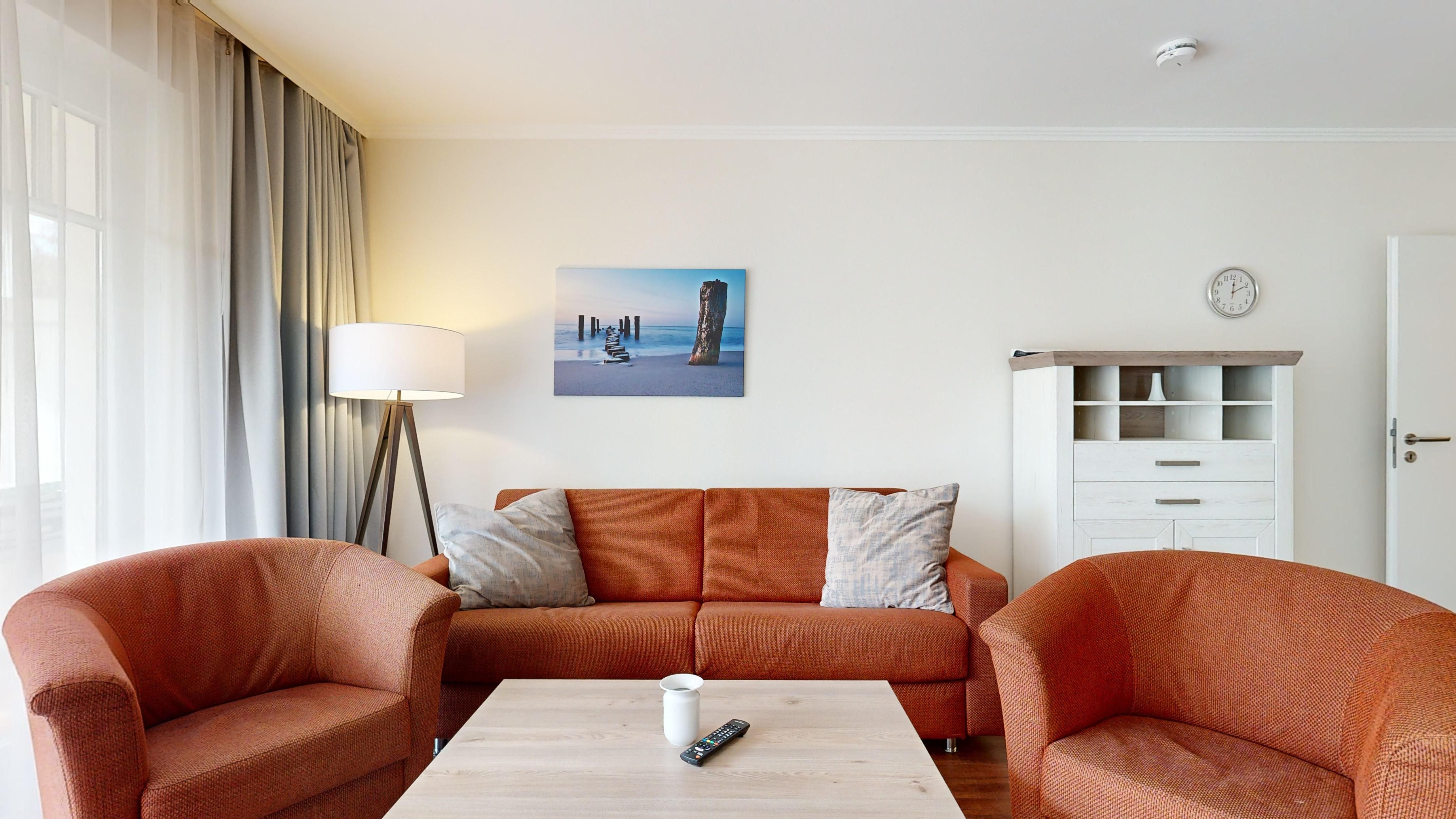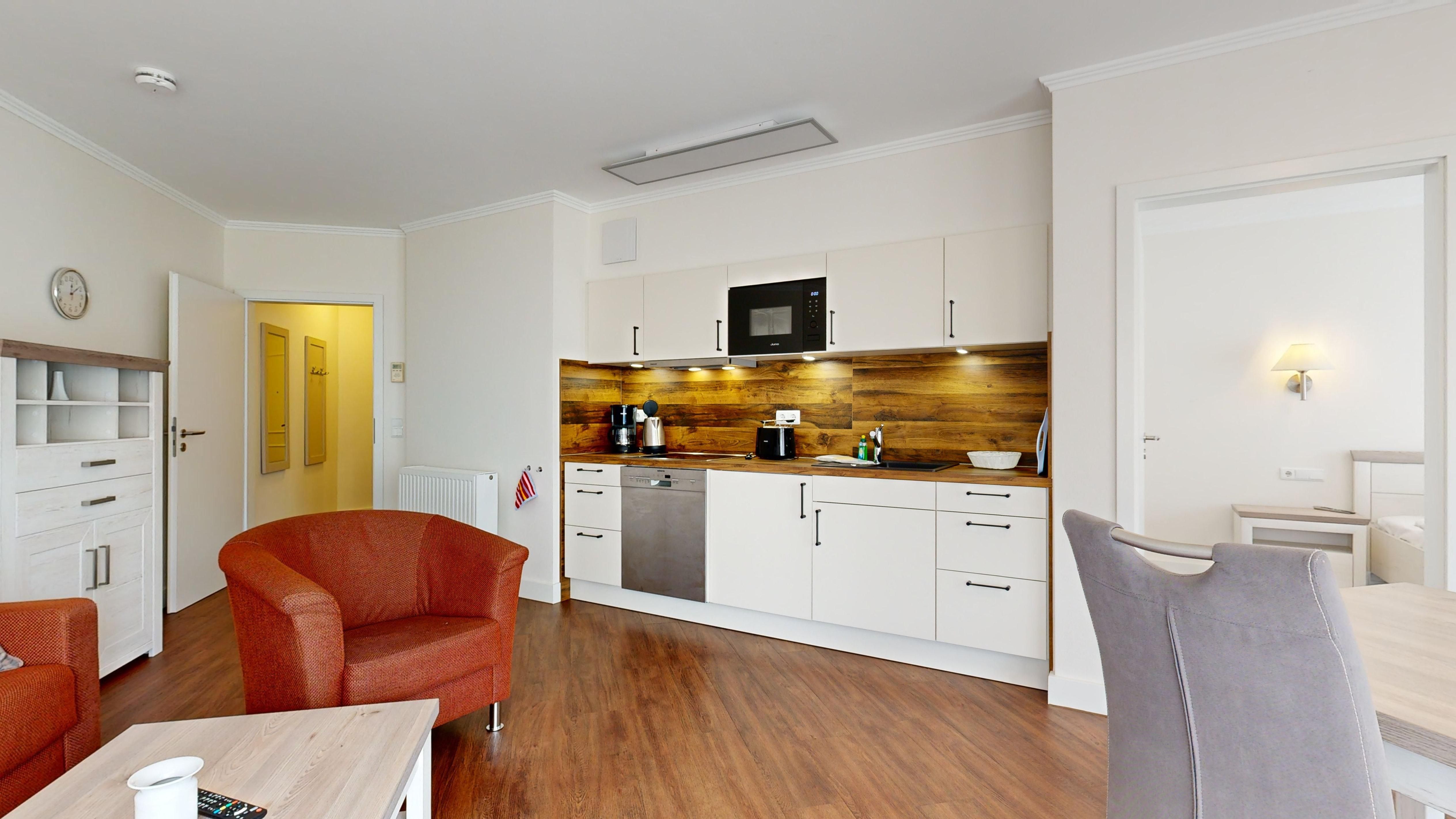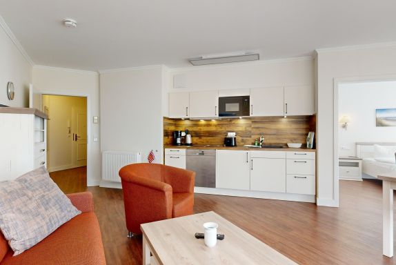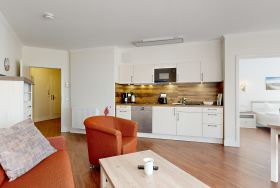 Im Dünenpark Binz befindet sich im Haus 8 die großzügige Komfort-Ferienwohnung im Erdgeschoss (2 Zimmer / 61 m²) mit 1 Schlafzimmer, einer Schlafcouch und mit großer Terrasse