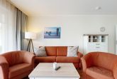 Ausstattung der großzügigen Komfort-Ferienwohnung im Erdgeschoss (2 Zimmer / 61 m², Haus Nr. 8) mit großer Terrasse: