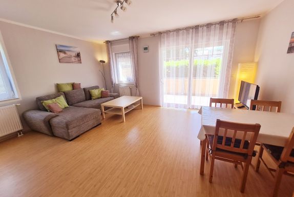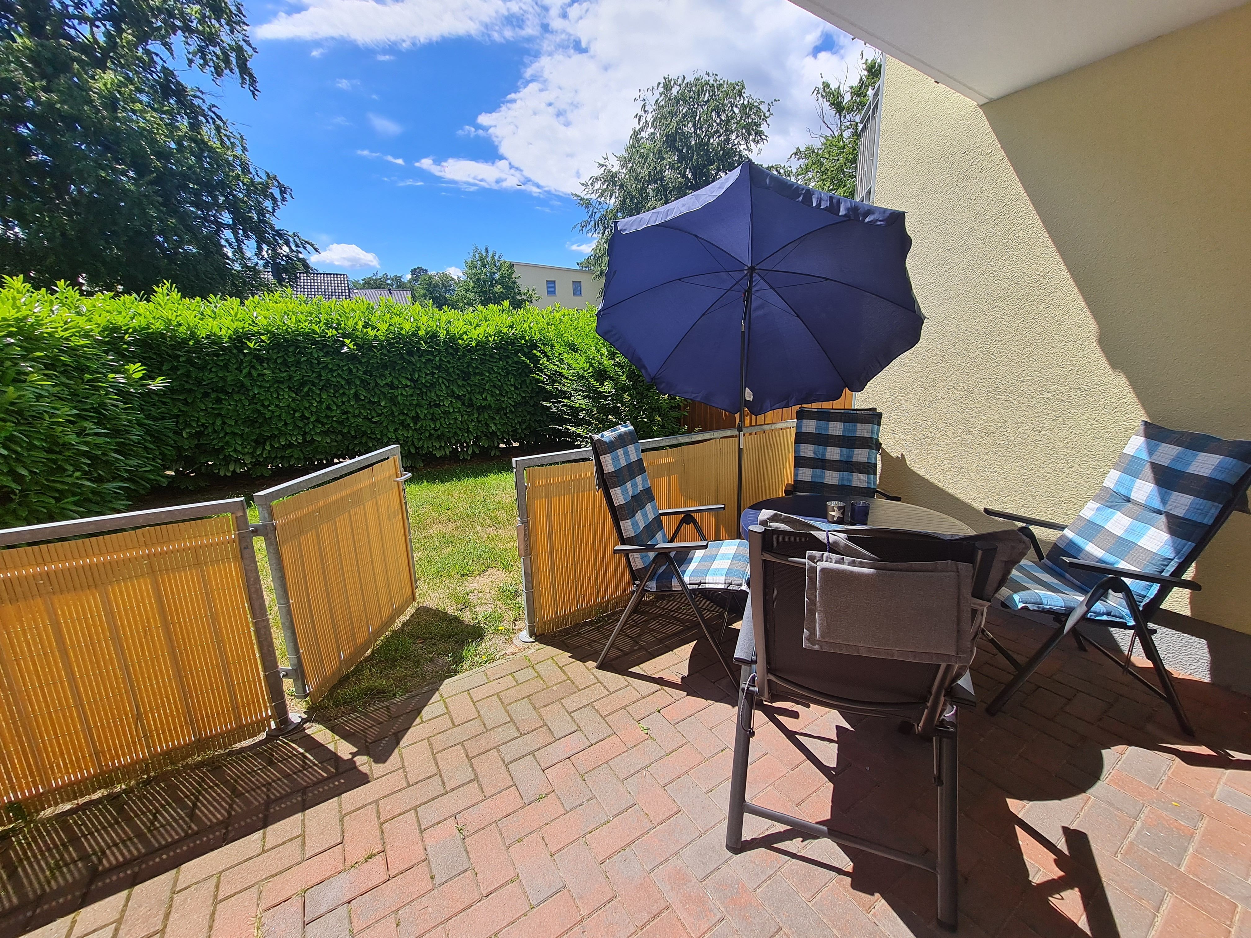 Nur 350m vom Strand entfernt liegt diese gemütlich und modern eingerichtete 3-Raum-Wohnung im Erdgeschoss mit ca. 63 m² Wohnfläche und einer sonnigen Südterrasse. Die sehr familienfreundliche Wohnung kann mit bis zu 4 Personen genutzt werden. Zwei separate Schlafzimmer und eine 1,40x2,00 m große Schlafcouch, bieten Platz für 4 Personen. Praktisch erreichbar befindet sich vor dem Objekt ein abschließbarer Außenabstellraum, der bis zu 4 Fahrrädern Platz o.ä. bietet. Der Wohnung ist ein kostenloser Stellplatz Nr.1 zugeordnet. Eine Waschmaschine steht kostenlos zu Verfügung.