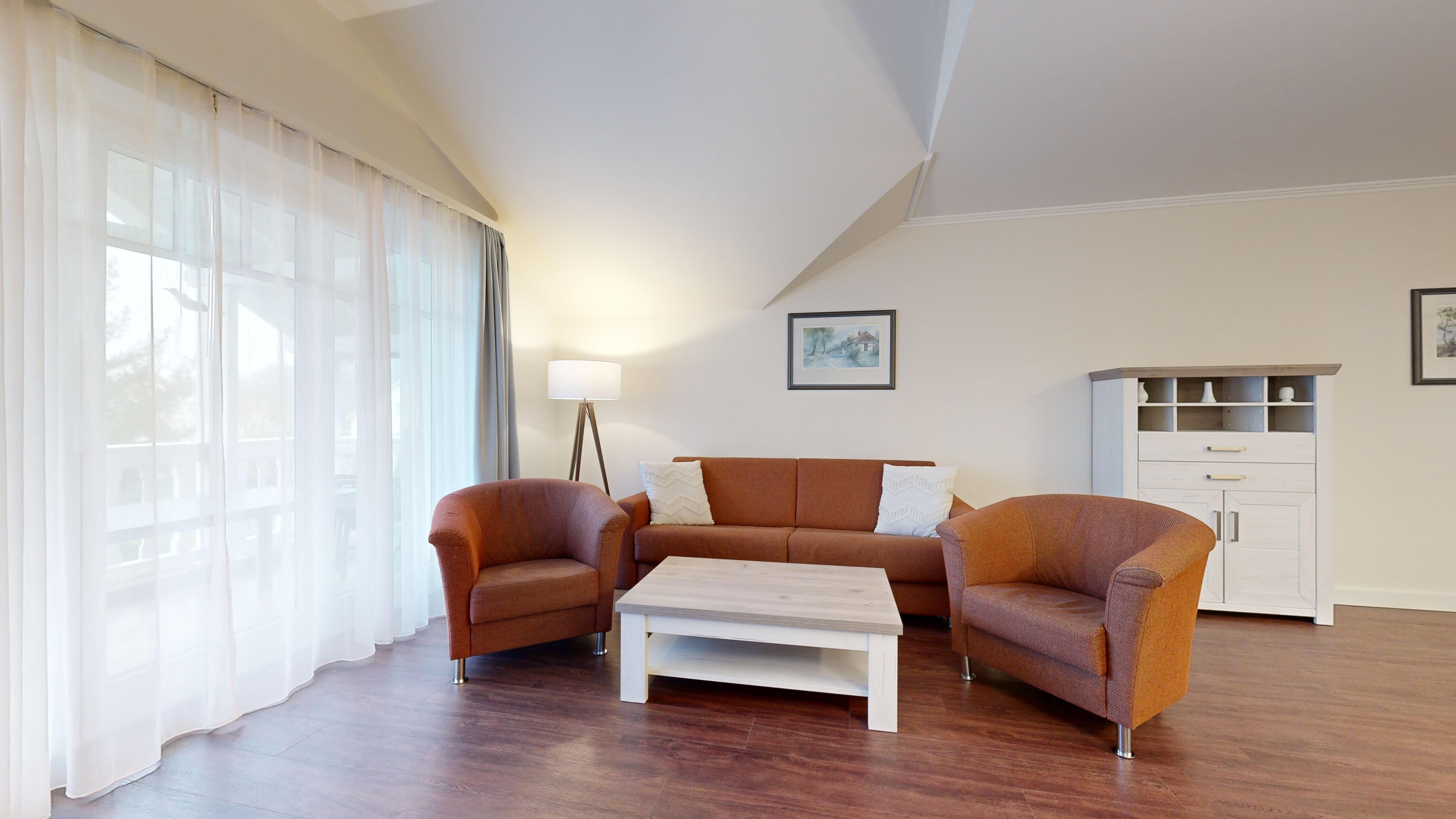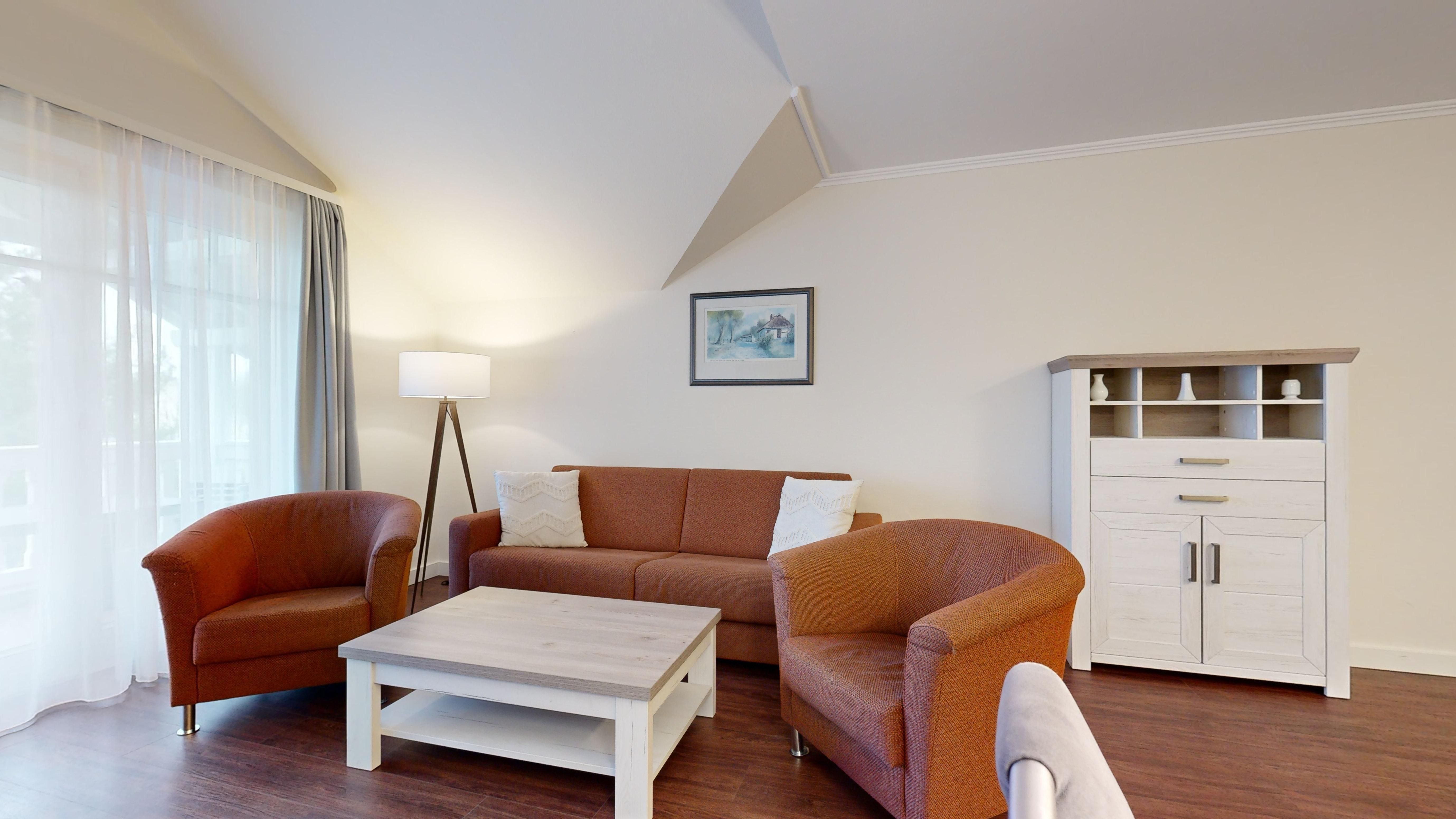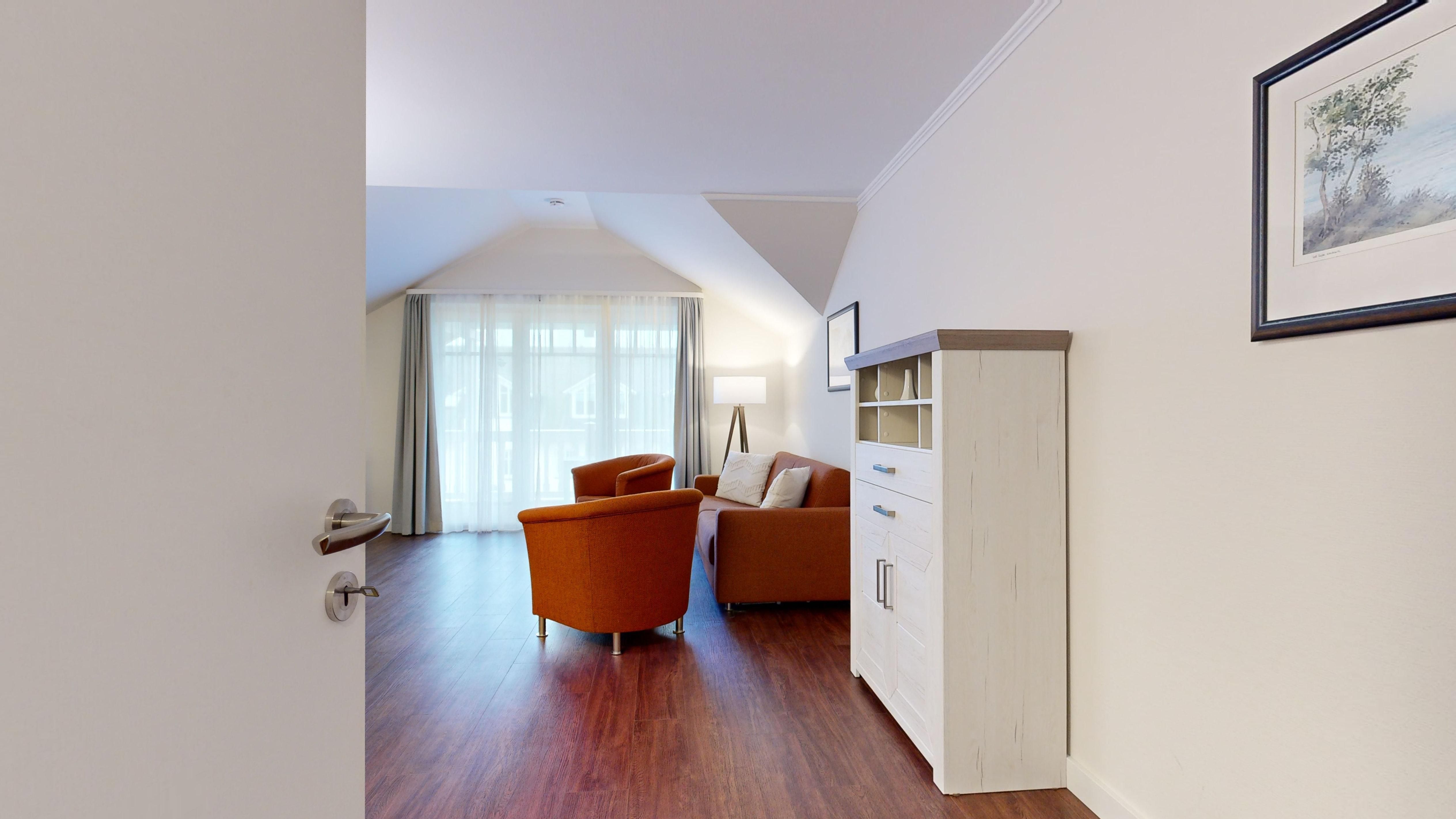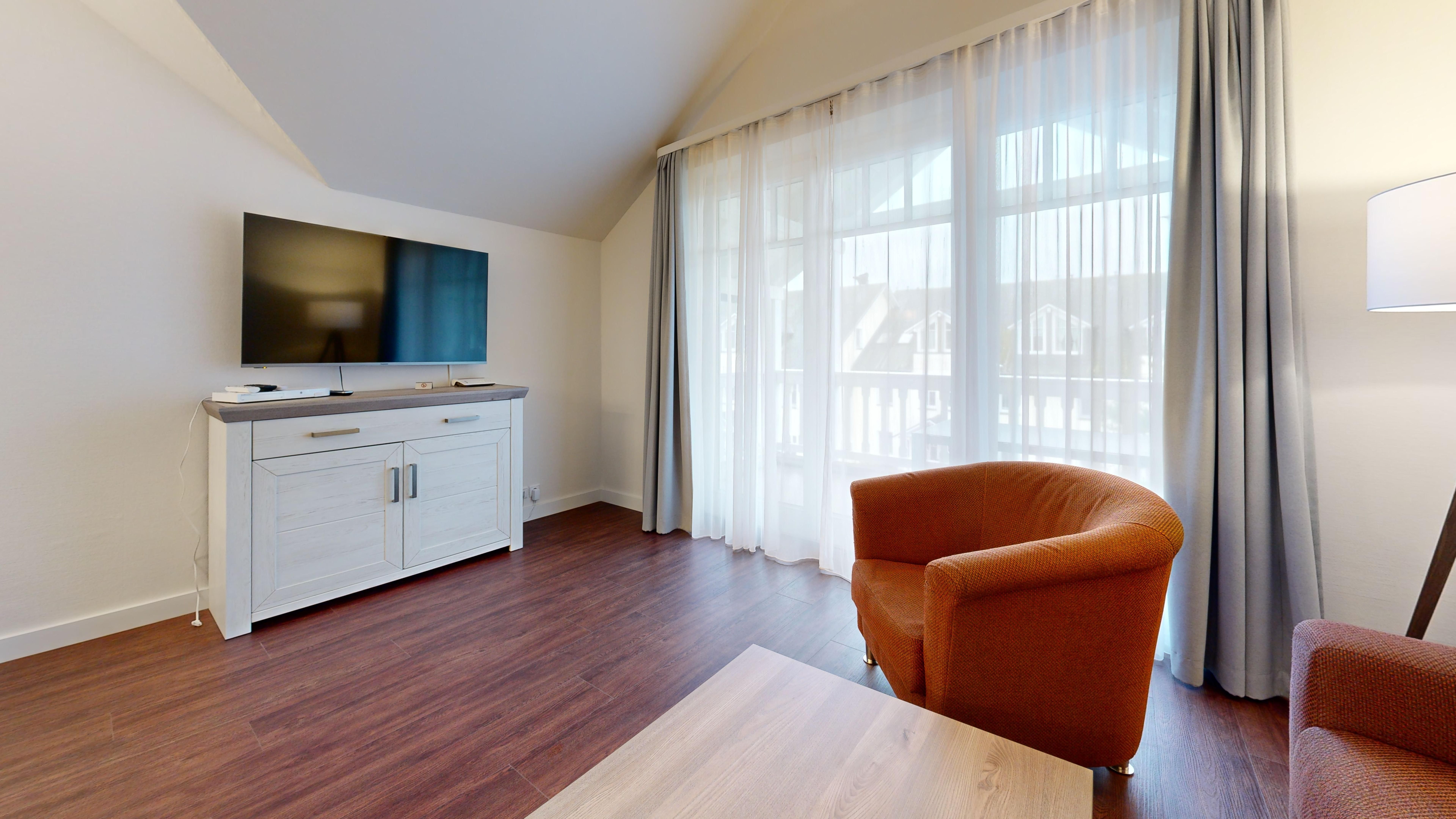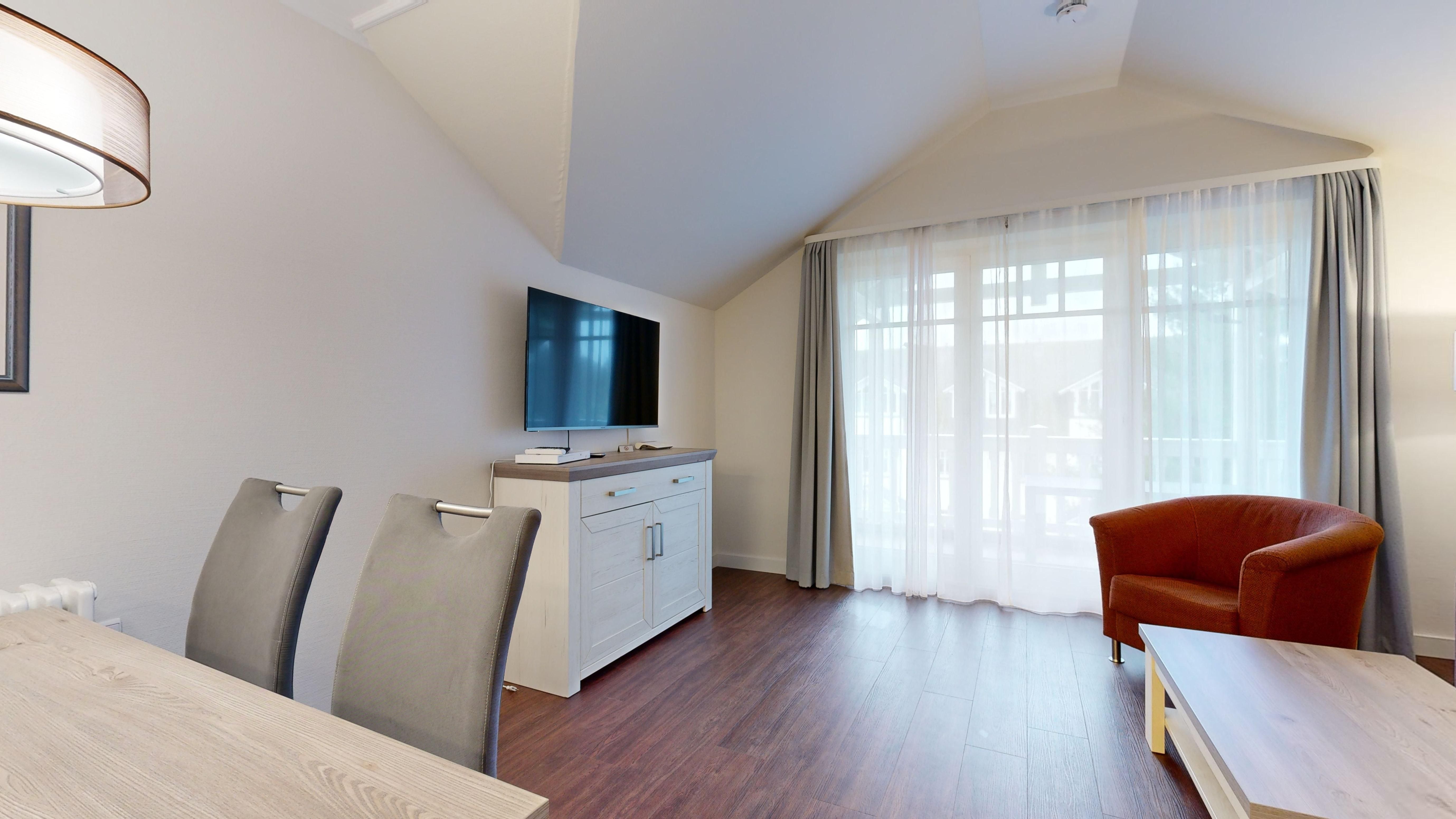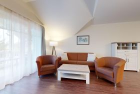 Im Dünenpark Binz befindet sich im Haus 9 die großzügige Komfort-Komfort-Ferienwohnung im OG (2 Zimmer / 62 m²) mit 1 Schlafzimmer, einer Schlafcouch und Balkon