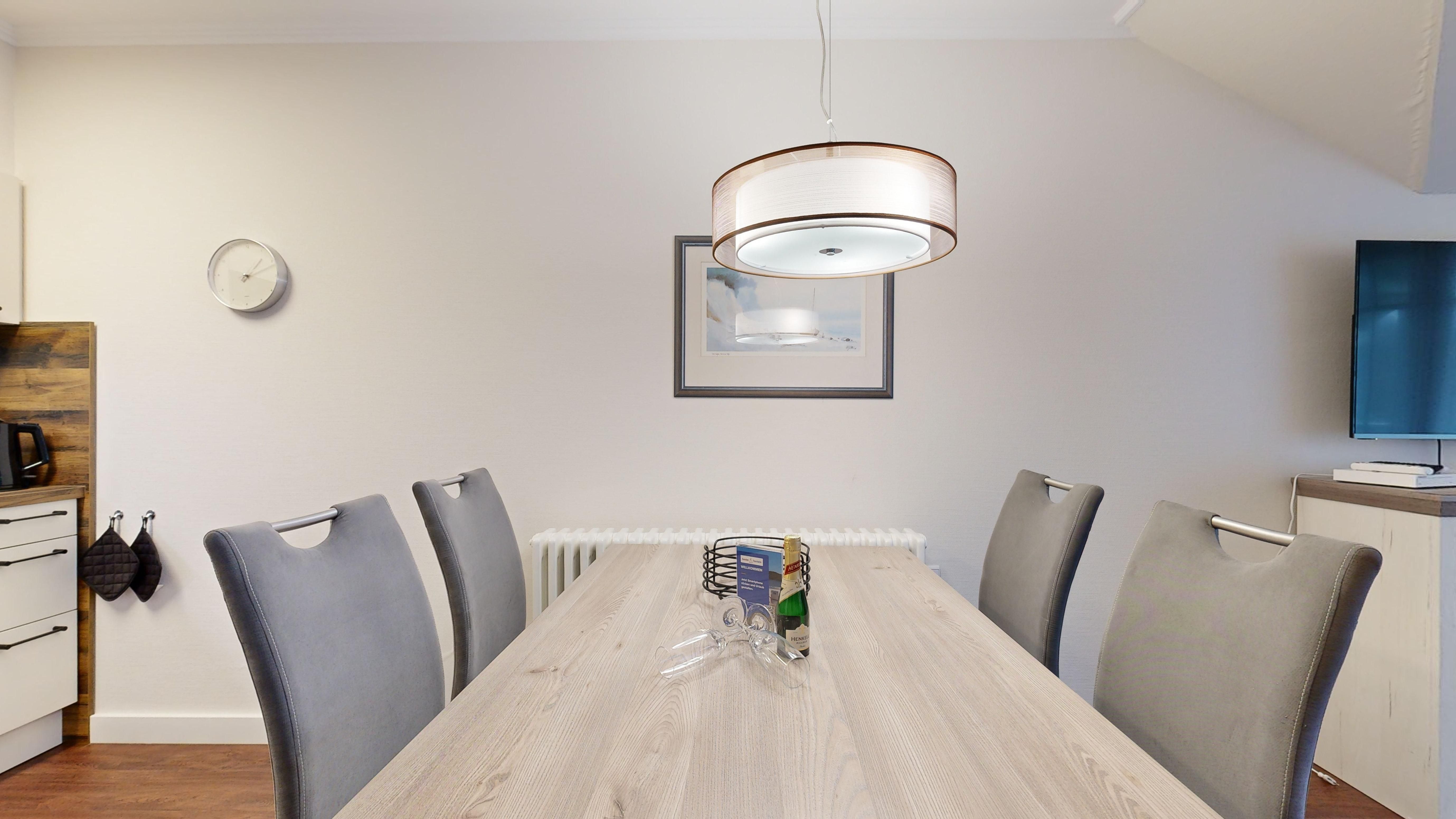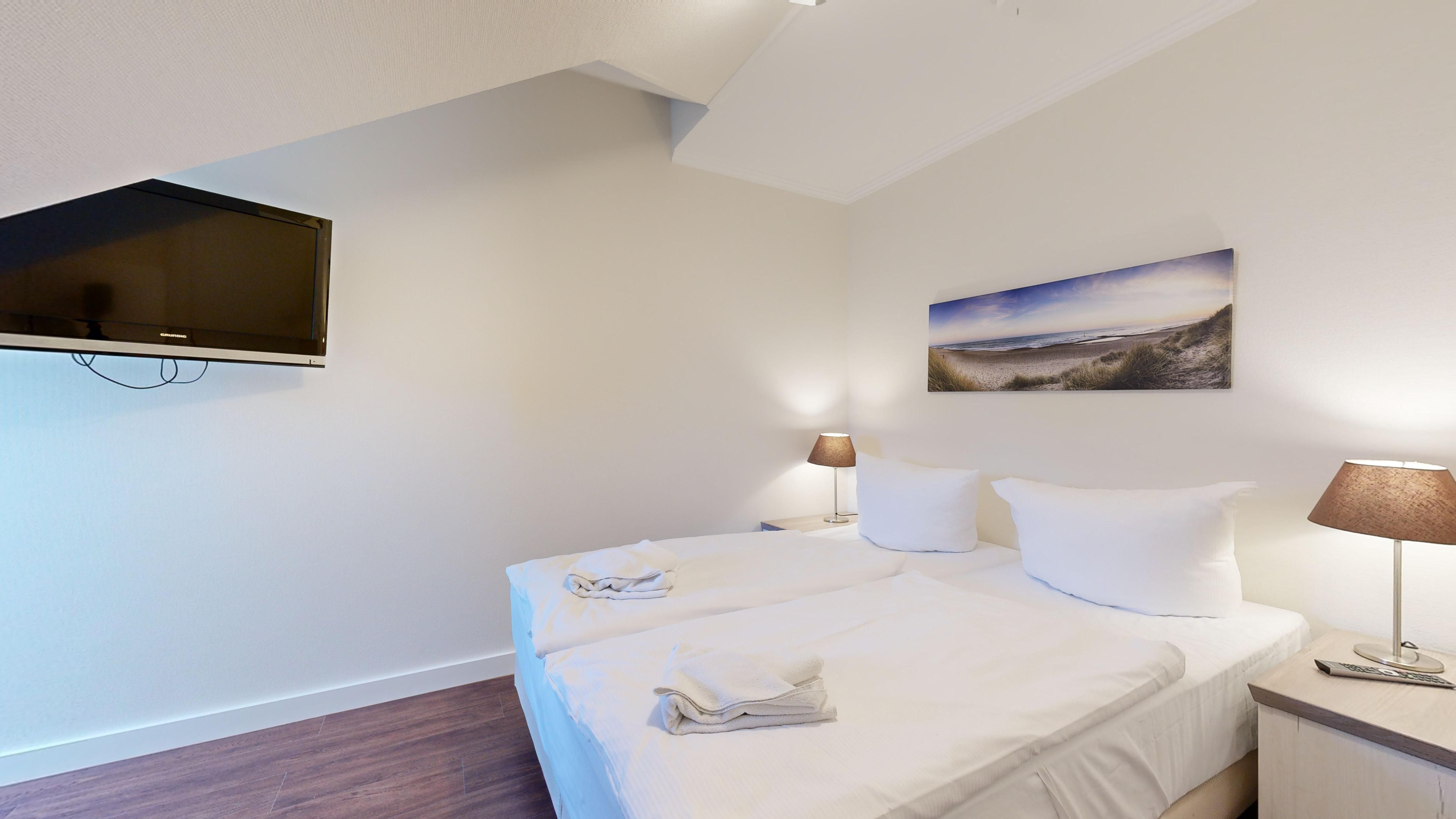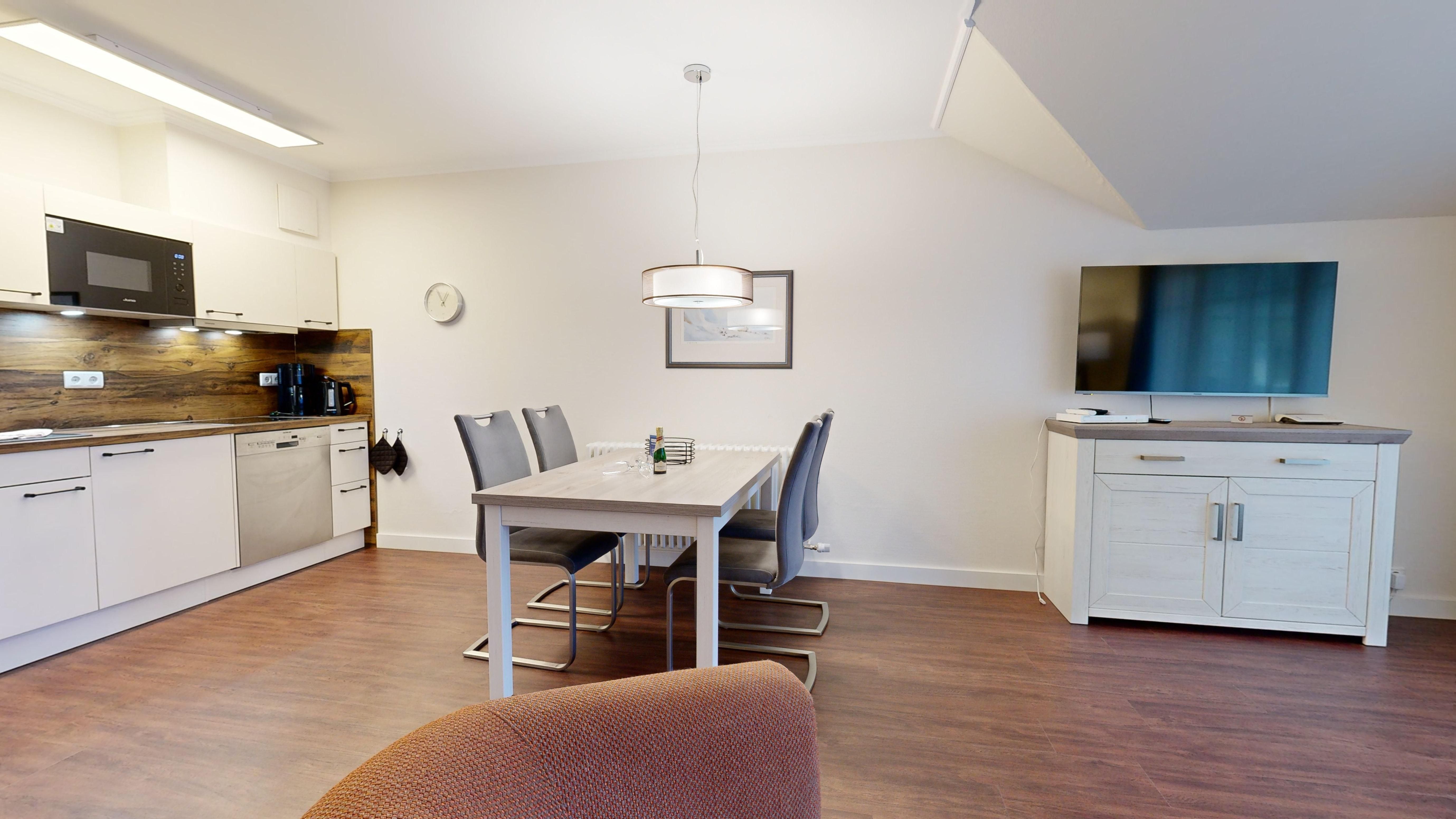 Ausstattung der großzügigen Komfort-Ferienwohnung im Dachgeschoss (2 Zimmer / 62 m², Haus Nr.9):