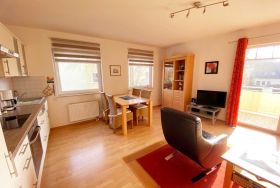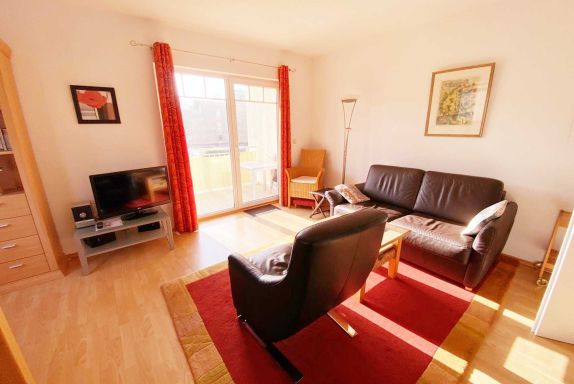 Nur 350m vom Strand entfernt liegt diese gemütlich und modern eingerichtete 2-Raum-Wohnung im 1. OG mit ca. 55 m² Wohnfläche und einem sonnigen Südbalkon. Die sehr helle und freundliche Wohnung kann mit bis zu 2 Personen genutzt werden. Ein separates Schlafzimmer, bieten Platz für 2 Personen. Praktisch erreichbar befindet sich vor dem Objekt ein abschließbarer Außenabstellraum, der Platz für Fahrräder o.ä. bietet. Der Wohnung ist ein kostenloser Stellplatz Nr. 4 zugeordnet. 2 Fahrräder, für ihren Einkauf oder um einmal schnell zum Strand zu kommen, stehen Ihnen kostenlos zu Verfügung. Eine Waschmaschine steht ebenfalls bereit.