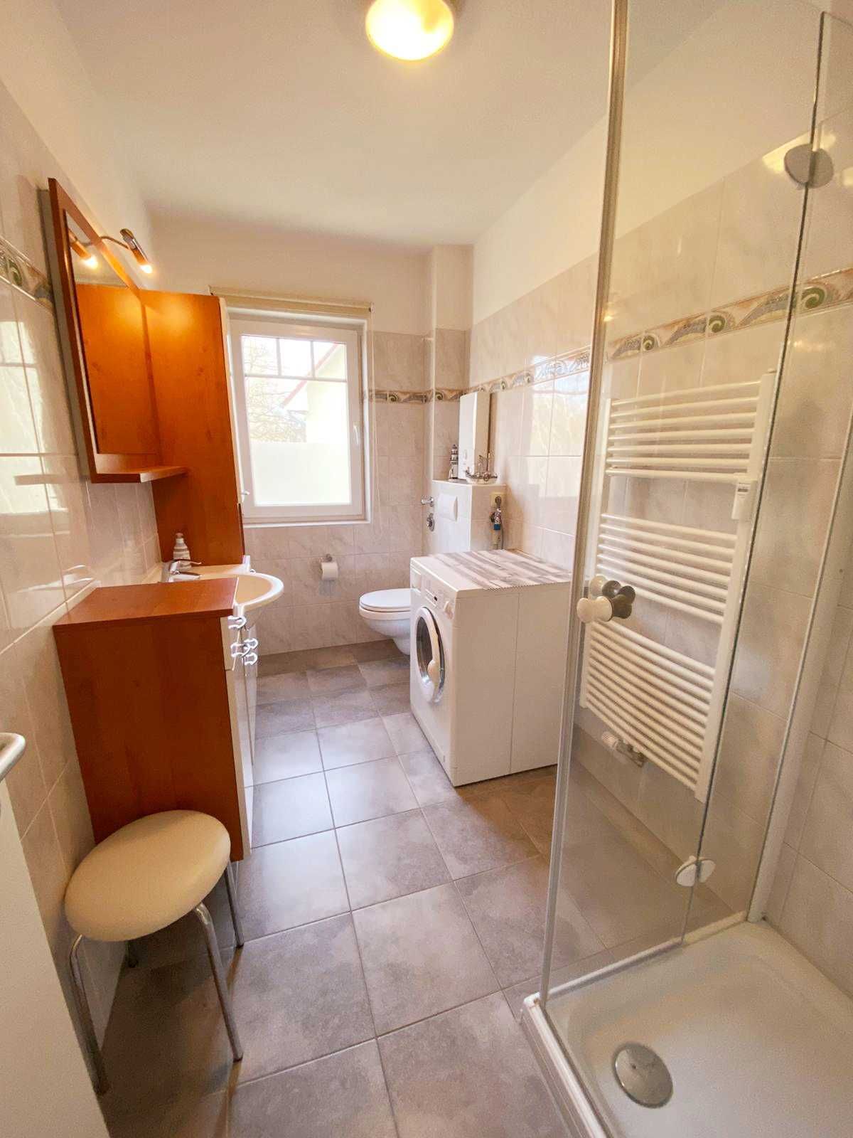 • Bad: mit Fenster, Dusche, Waschbecken, Toilette, Spiegelschrank, Unterschrank Waschbecken, Schrank, Waschmaschine Frontlader