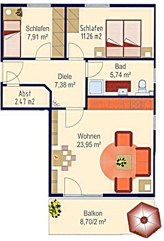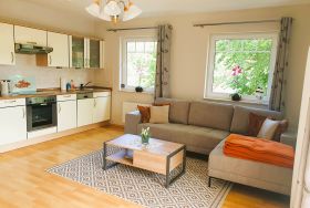 Nur 350m vom Strand entfernt liegt diese gemütlich und modern eingerichtete 3-Raum-Wohnung im 2. OG mit ca. 63 m² Wohnfläche und einem sonnigen Südbalkon. Die sehr familienfreundliche Wohnung kann mit bis zu 4 Personen genutzt werden. Zwei separate Schlafzimmer, bieten Platz für 4 Personen. Praktisch erreichbar befindet sich vor dem Objekt ein abschließbarer Außenabstellraum, der Platz für Fahrräder o.ä. bietet. Der Wohnung ist ein kostenloser Stellplatz Nr. 7 zugeordnet. Ebenso können Sie das kostenlose WLAN nutzen.