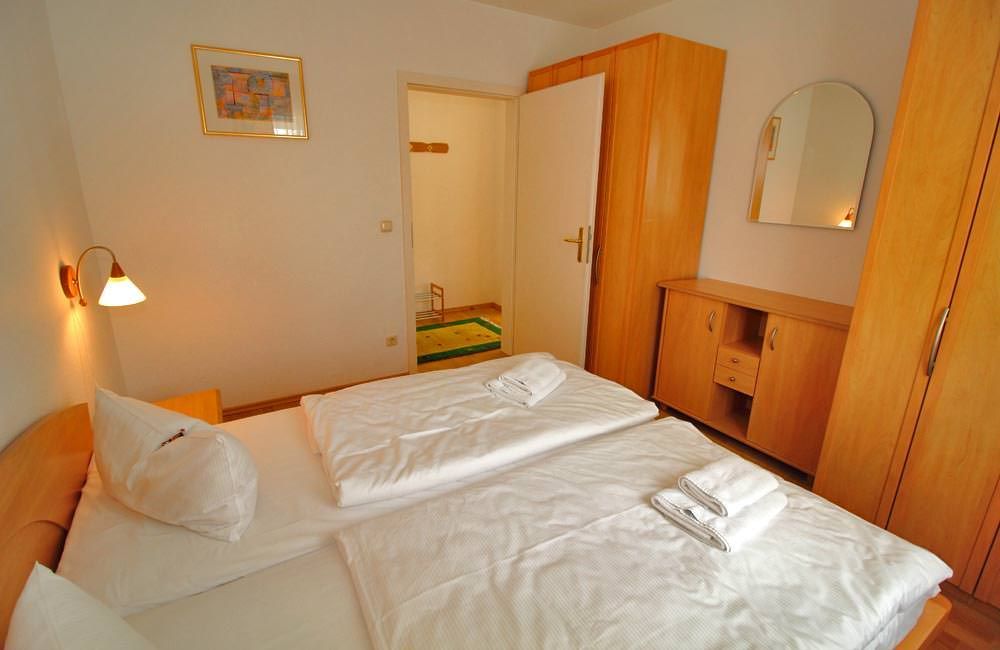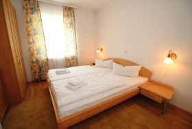 Das Schlafzimmer ist mit einem bezogenen Doppelbett ausgestattet. Für Ihr Gepäck/Garderobe ist ausreichend Stauraum vorhanden.