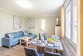 Über die kleine Zugangstreppe erreichen Sie die Wohnung 3. Diese Wohnung hat auf 69 Quadratmetern Platz für vier Personen. Das 1. Schlafzimmer grenzt an den Wohnbereich. Das 2. Schlafzimmer erreichen Sie über den Wohnungsflur. Die obere Wohnung 4 bietet ebenso bis zu vier Personen auf 74 Quadratmetern Platz.