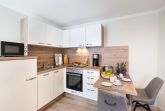• Küchenbereich: Offen, Backofen, Kühlschrank