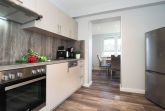 - Separate Küche mit allen Extras (Spülmaschine, Kühlschrank mit Gefrierfach, Backofen, Mikrowelle, Kochfeld, Wasserkocher, Kaffeemaschine, Toaster) und einem großzügigen Esstisch in der angrenzenden Veranda mit einem Flat-TV in der Veranda