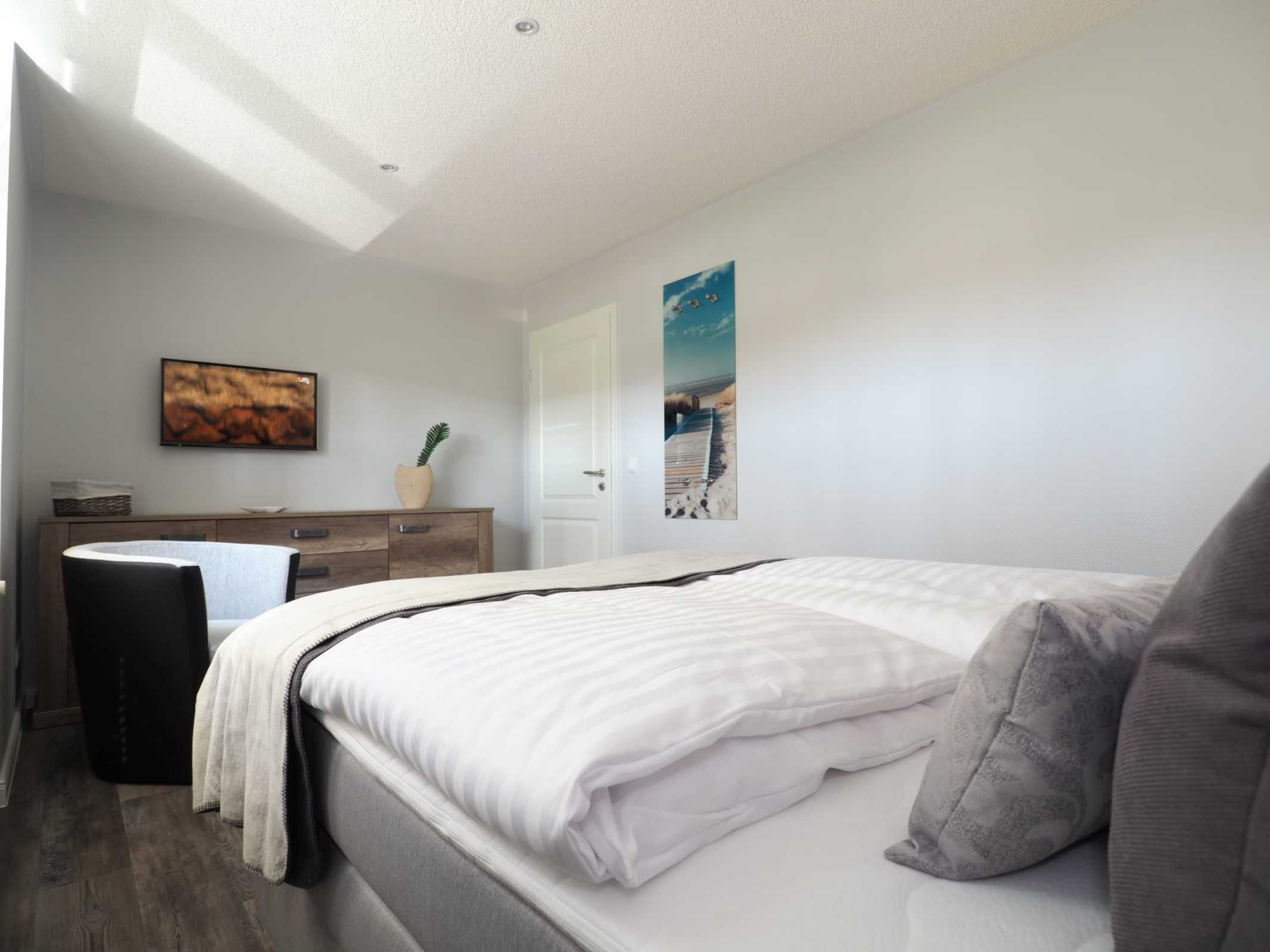 - Zwei Schlafzimmer mit einem gemütlichen Doppelbett (180 x 200cm / durchgehende Matratze) bzw. Doppelbett (140 x 200cm/durchgehende Matratze) und Flachbildfernseher