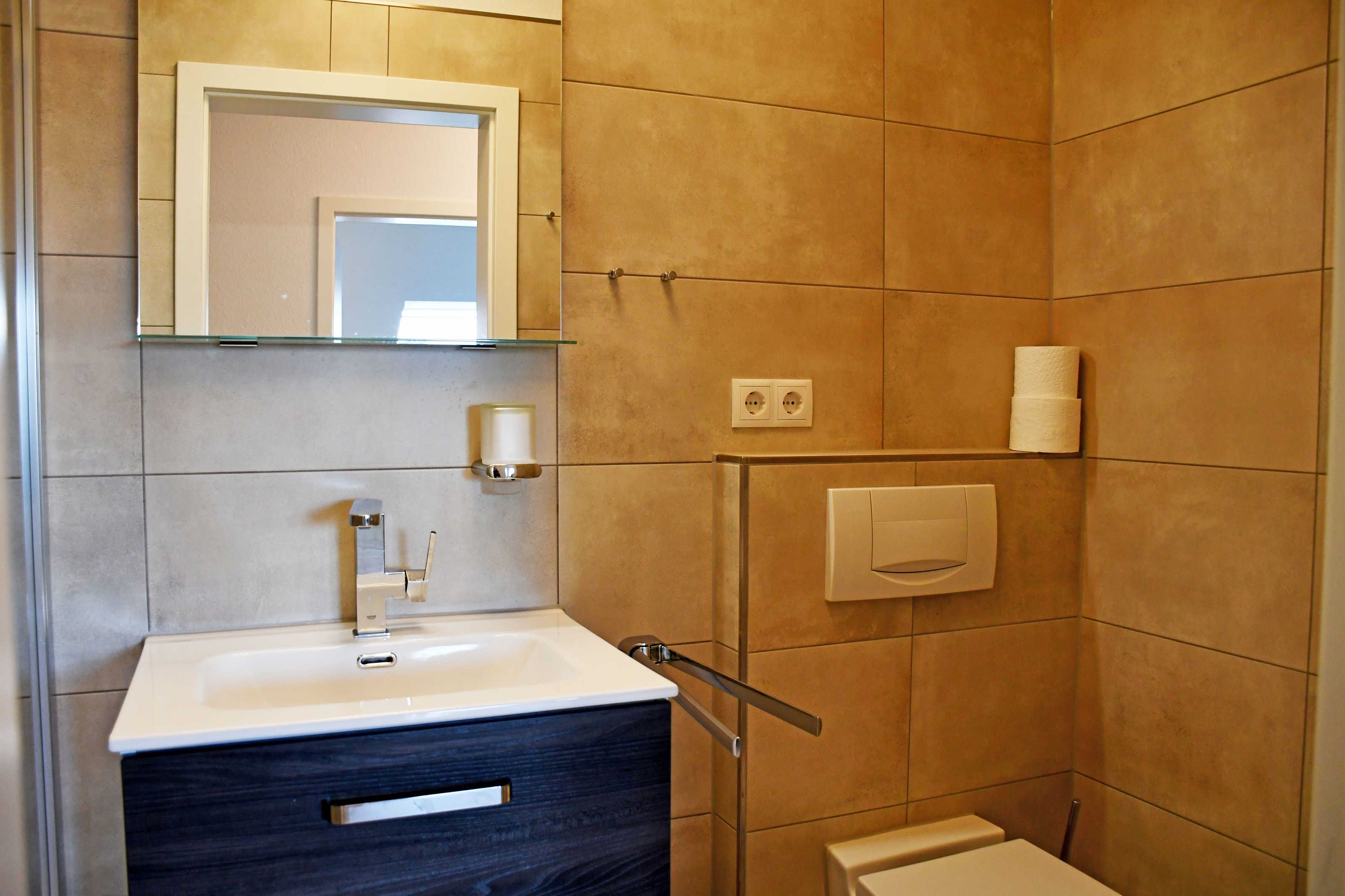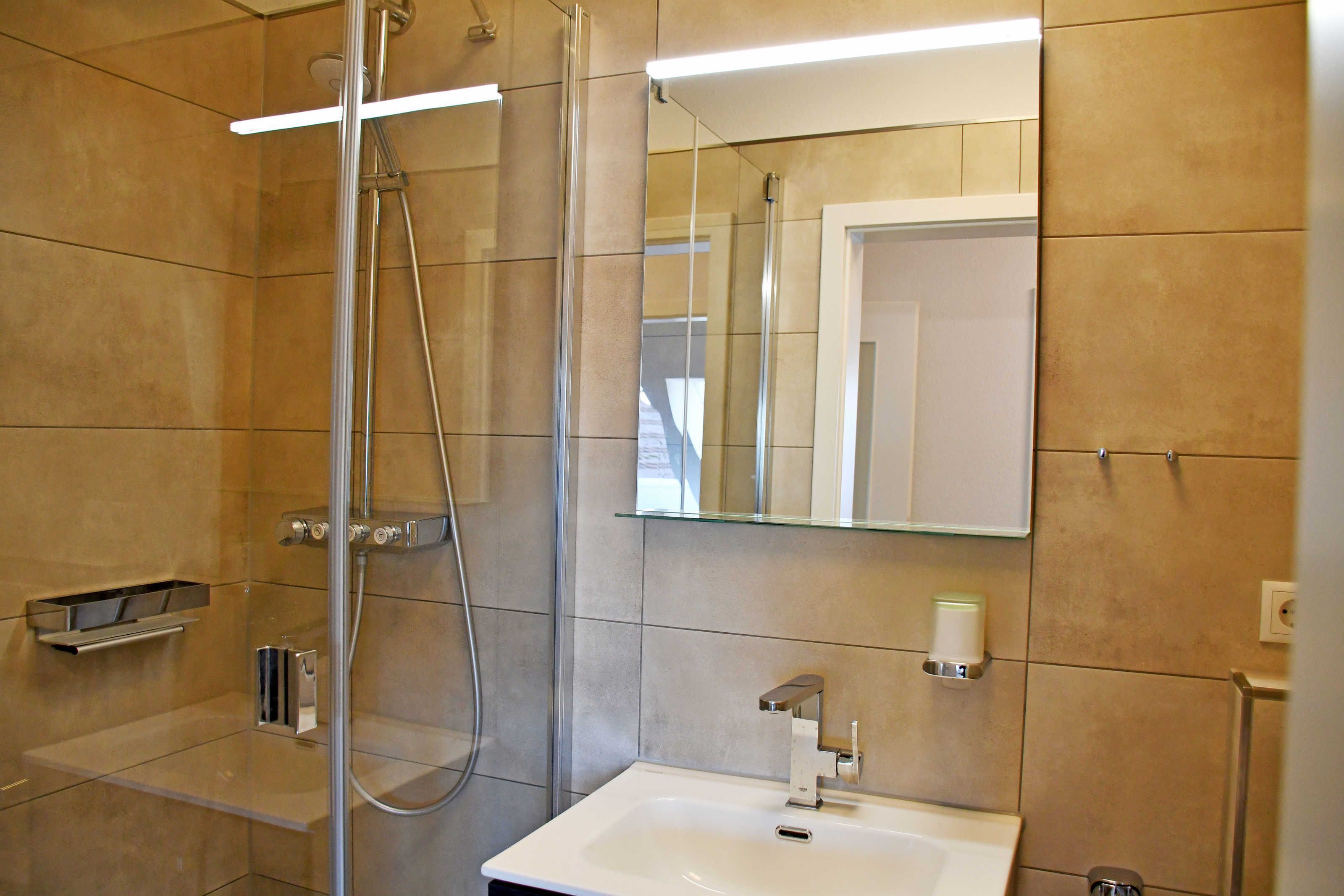 Das weitere hochwertig renovierte Bad mit Regenwalddusche und allem Komfort, erfüllt auch anspruchsvolle Wellnesswünsche.