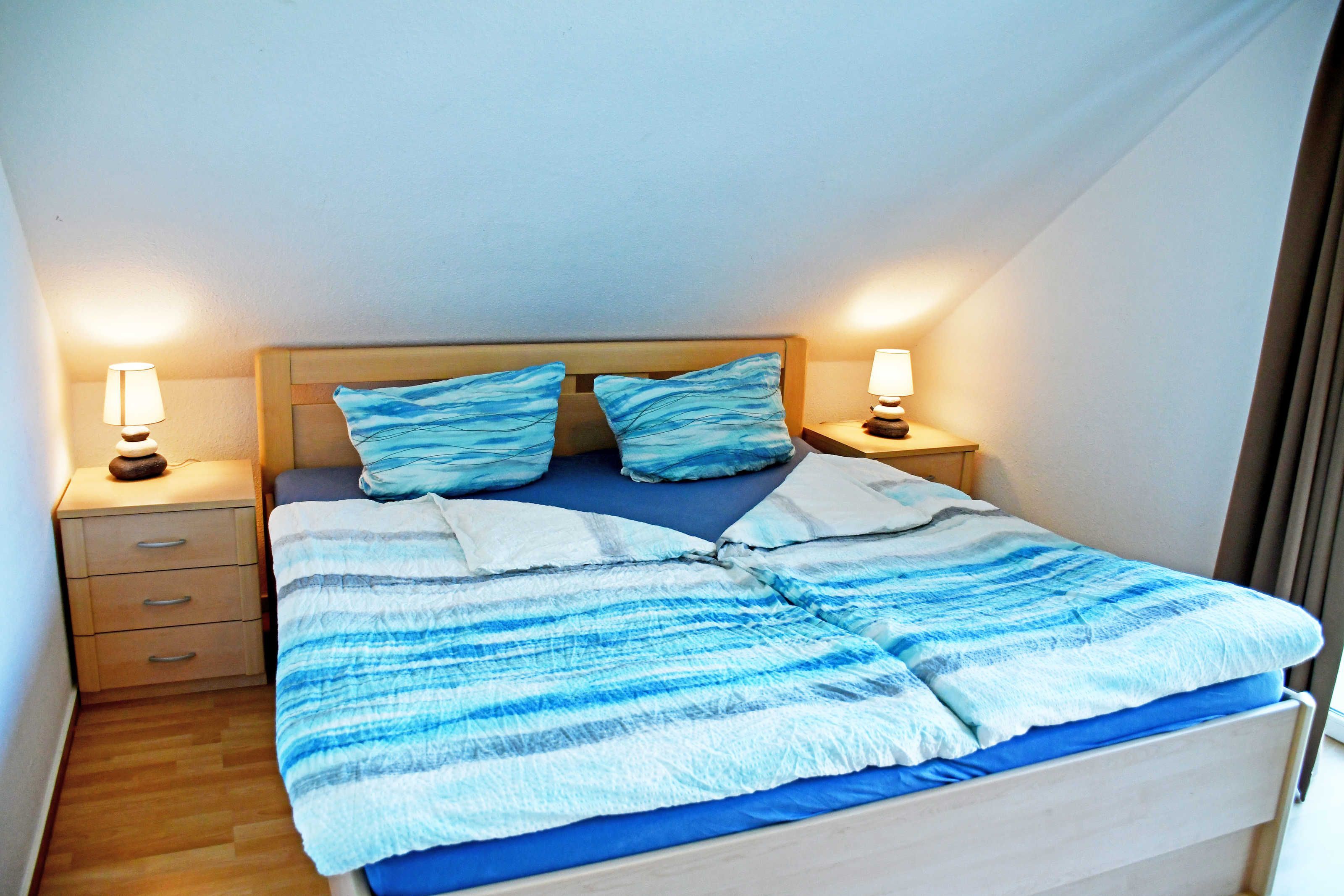 Die Komfortable Ferienwohnung verfügt über 2 separate Schlafzimmer mit je ein Doppelbett ( .cm x .cm), Nachttischen mit Beleuchtung sowie je einem Kleiderschrank. Davon ist 1 Schlafzimmer mit Tageslichtbad en Suite und Badewanne ausgestattet. Bei Ihrer Anreise liegen frische Handtücher bereit und die Betten sind bereits mit Bettwäsche bezogen. Beide Schlafzimmer verfügen über Verdunklungsmöglichkeiten.