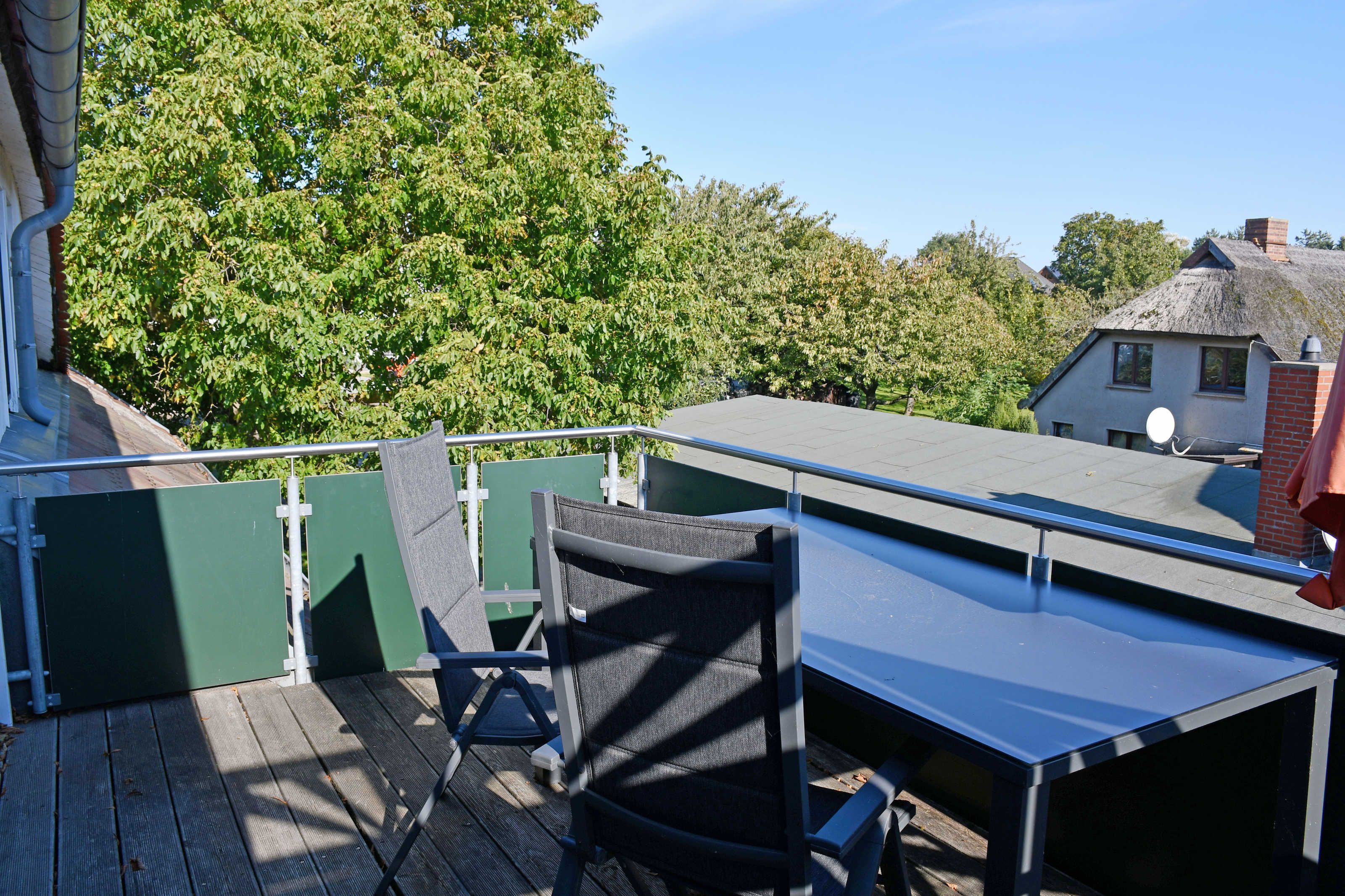 Auf dem mit Gartenmöbeln ausgestatteten Ostbalkon, können Sie entspannen und den Tag mit einem Frühstück in der Sonne beginnen.