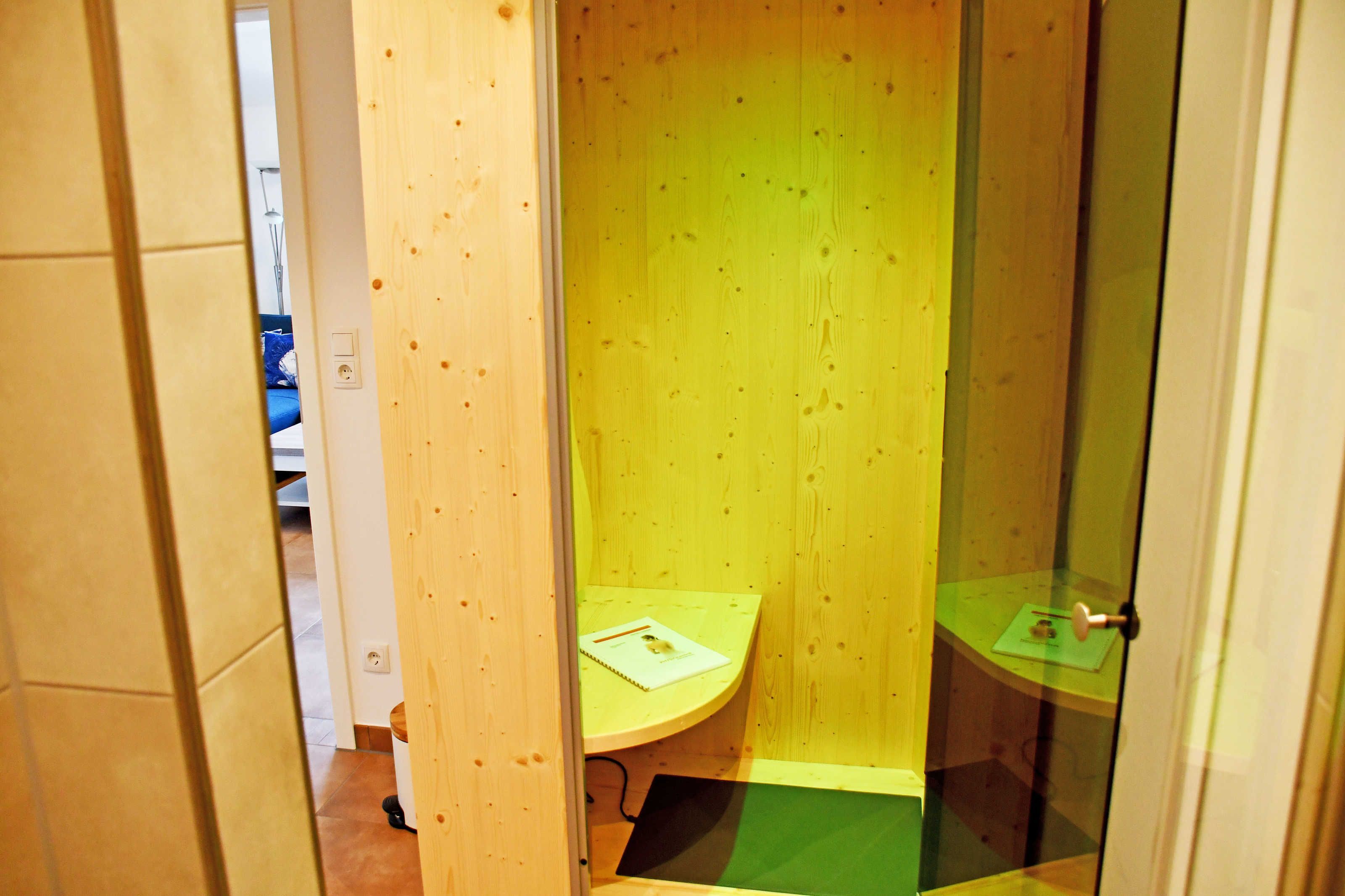 Das hochwertig renovierte Bad mit Regenwalddusche und als absolutem Highlight einer Luxus-Infrarotkabine von Physiotherm, bietet allen Komfort und erfüllt alle Wellnesswünsche, insbesondere in der kalten Jahreszeit. Vorher können Sie kostenlos den Fitnessraum nutzen, um schon einmal vorab so richtig ins Schwitzen zu kommen.