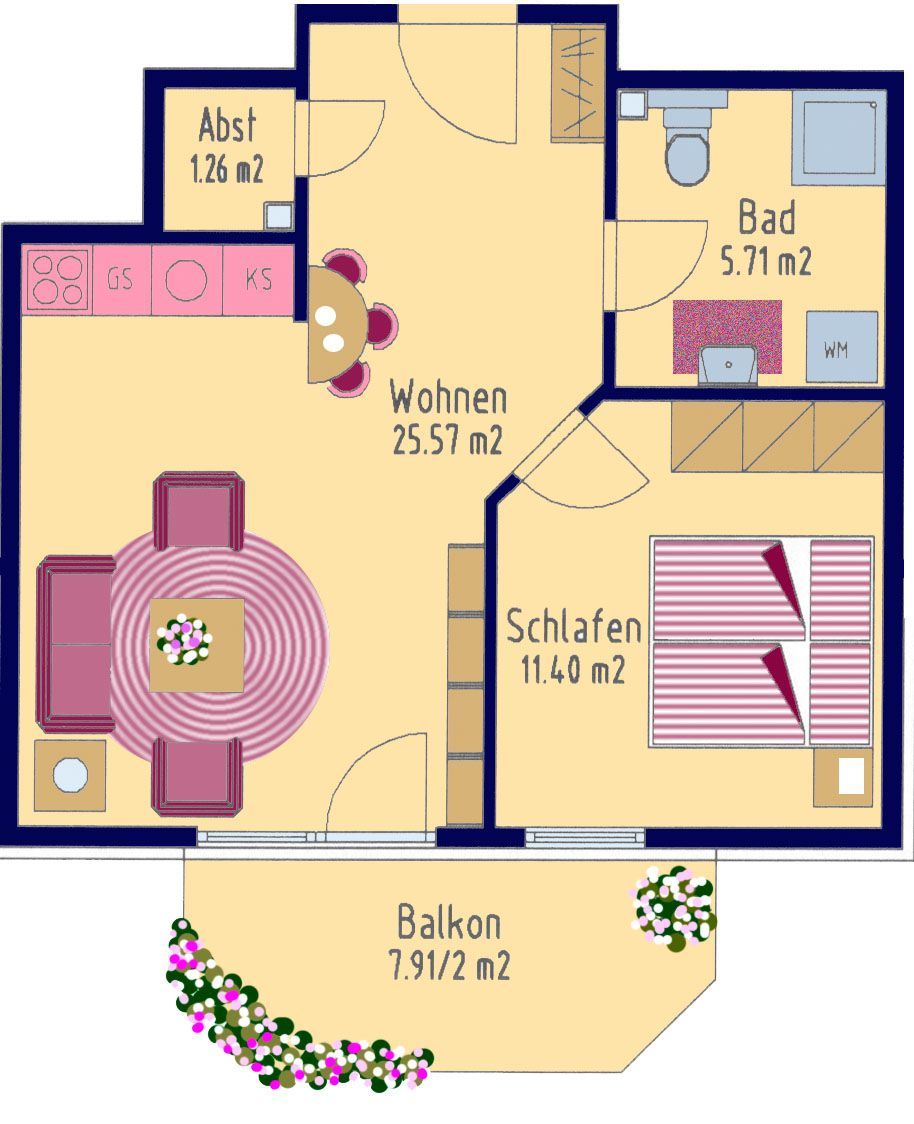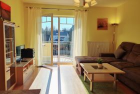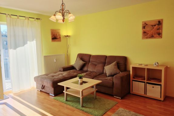 Nur 350m vom Strand entfernt liegt diese gemütlich und modern eingerichtete 2-Raum-Wohnung im 2. OG mit ca. 48 m² Wohnfläche und einem sonnigen Südbalkon. Die sehr familienfreundliche Wohnung kann mit bis zu 3 Personen genutzt werden. Ein separates Schlafzimmer und eine gemütliche Eck-Schlafcouch mit 1,40x2,00m bieten Platz für 3 Personen. Praktisch erreichbar befindet sich vor dem Objekt ein abschließbarer Außenabstellraum, der Platz für Fahrräder o.ä. bietet. Der Wohnung ist ein kostenloser Stellplatz Nr. 8 zugeordnet. Ebenso können Sie das kostenlose WLAN nutzen.