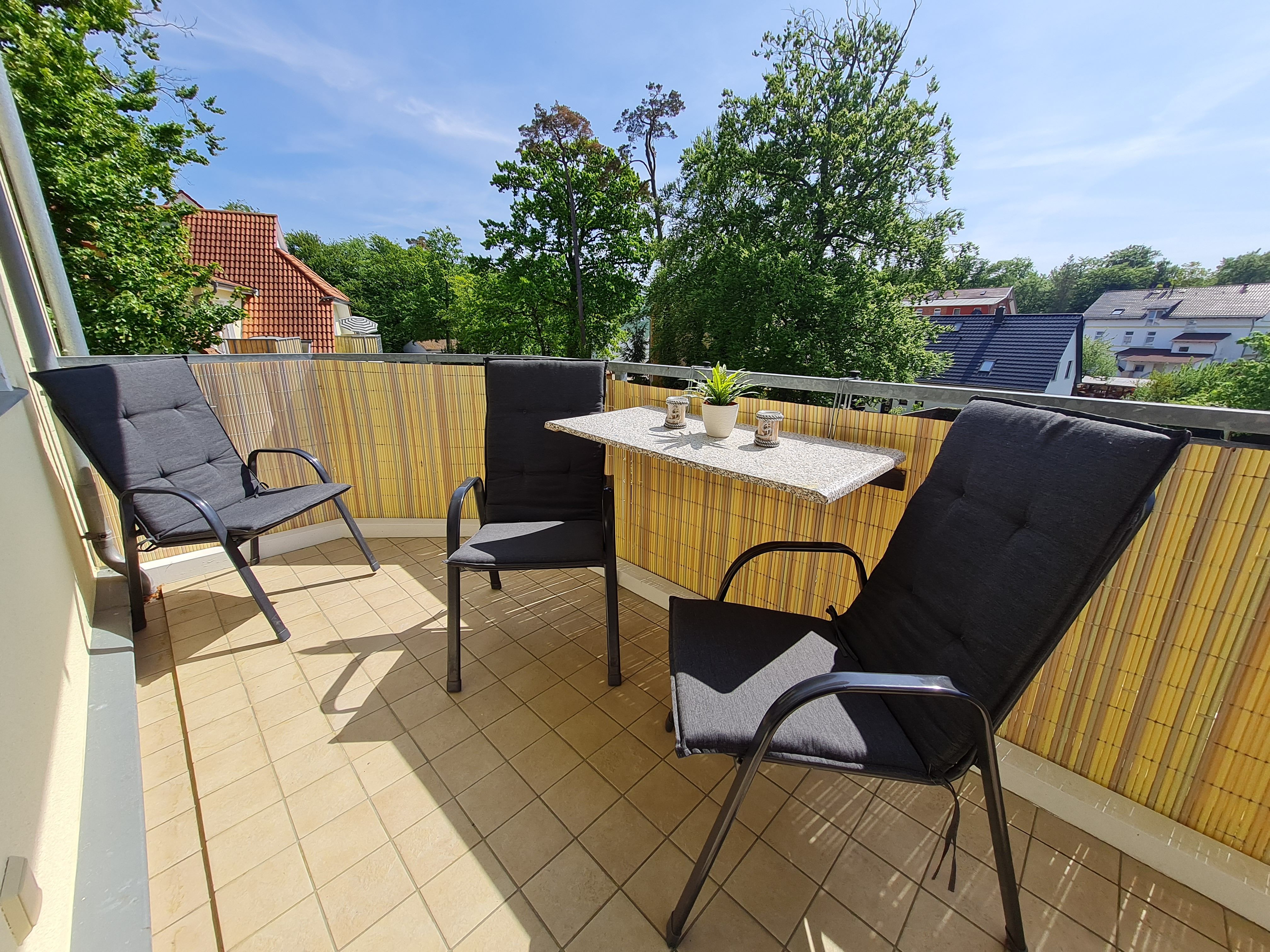 • Balkon: Südausrichtung, Tisch, 3 Stühle