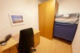 • Schlafzimmer: Doppelbett mit 90x200cm Matratzen, Schrank, Nachttische, Lampen