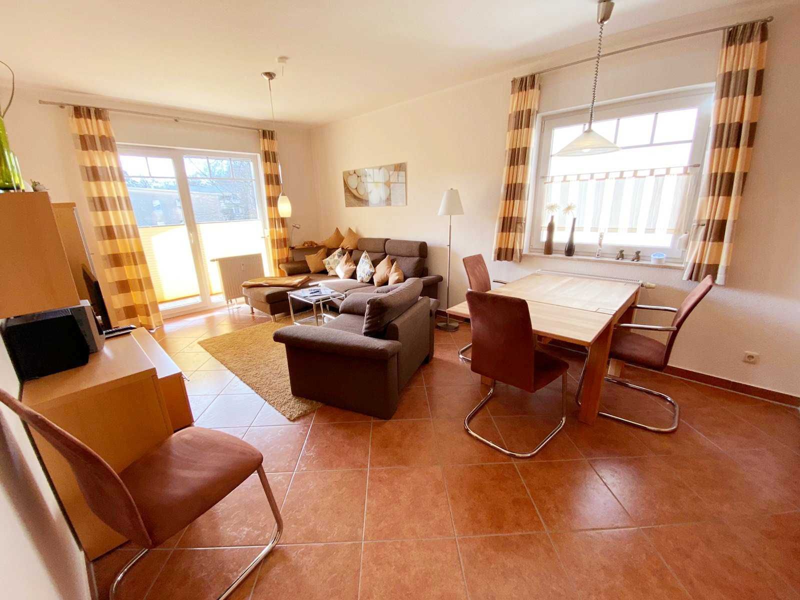 Nur 350m vom Strand entfernt liegt diese gemütlich und modern eingerichtete 2-Raum-Wohnung im 2. OG mit ca. 48 m² Wohnfläche und einem sonnigen Südbalkon. Die sehr helle und freundliche Wohnung kann mit bis zu 2 Personen genutzt werden. Ein gemütliches Schlafzimmer, bieten Platz für 2 Personen. Praktisch erreichbar befindet sich vor dem Objekt ein abschließbarer Außenabstellraum, der Platz für Fahrräder o.ä. bietet. Der Wohnung ist ein kostenloser Stellplatz Nr. 9 zugeordnet. Eine Waschmaschine steht Ihnen hier auch zu Verfügung. Ebenso können Sie das kostenlose Wlan nutzen.