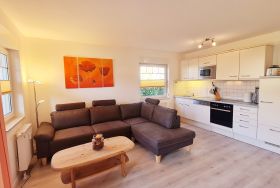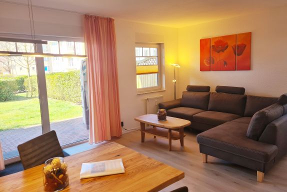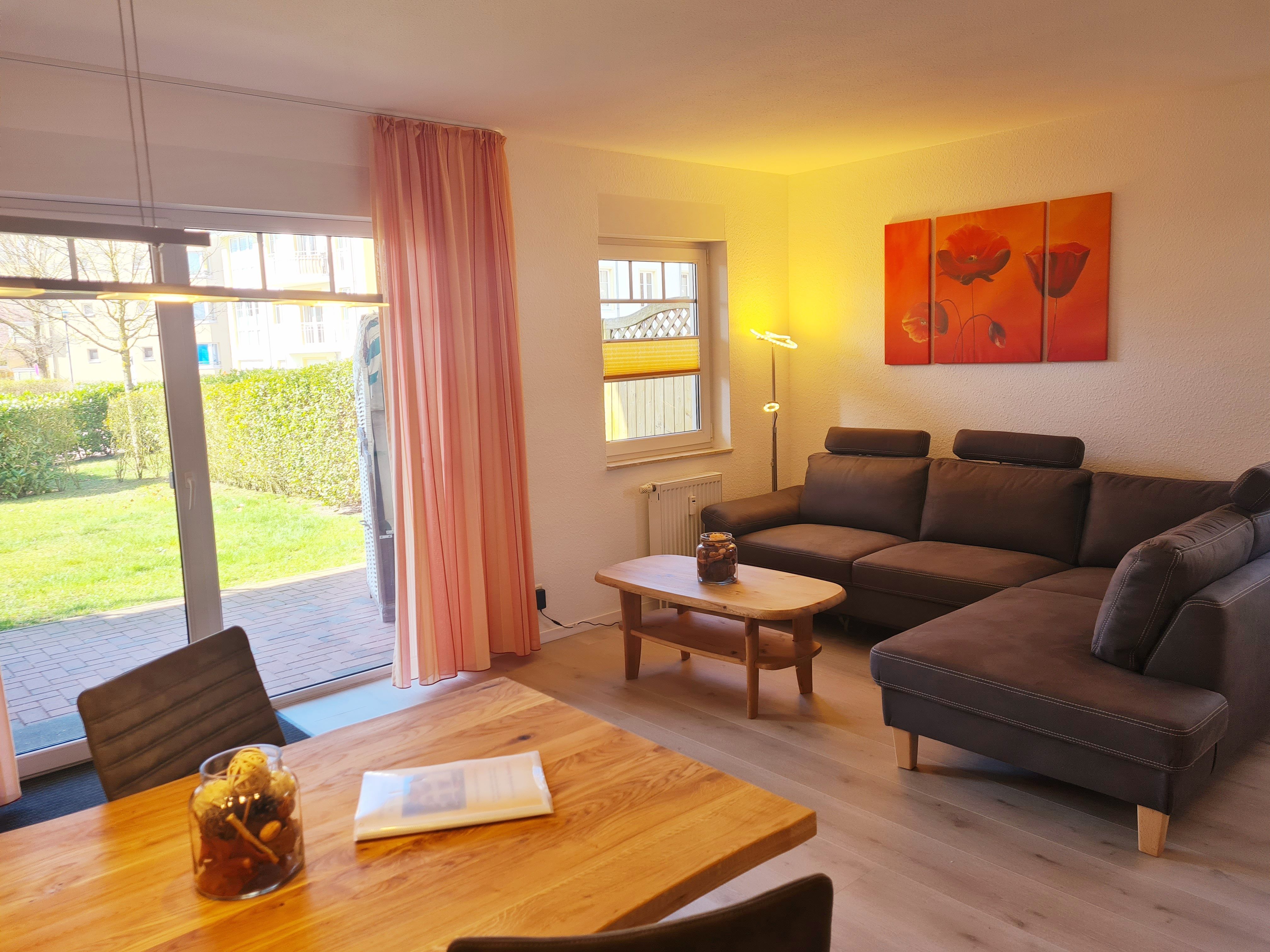 Nur 350m vom Strand entfernt liegt diese gemütlich und modern eingerichtete 3-Raum-Wohnung im Erdgeschoss mit ca. 63 m² Wohnfläche und einer sonnigen Südterrasse. Die sehr familienfreundliche Wohnung kann mit bis zu 5 Personen (+ 1 Kleinkind auf Anfrage) genutzt werden. Zwei separate Schlafzimmer bieten Platz für 5 Personen. Praktisch erreichbar befindet sich vor dem Objekt ein abschließbarer Außenabstellraum, der Platz für Fahrrädern o.ä. bietet. Der Wohnung ist ein kostenloser Stellplatz Nr.26 zugeordnet. WLAN steht Ihnen kostenlos zu Verfügung.