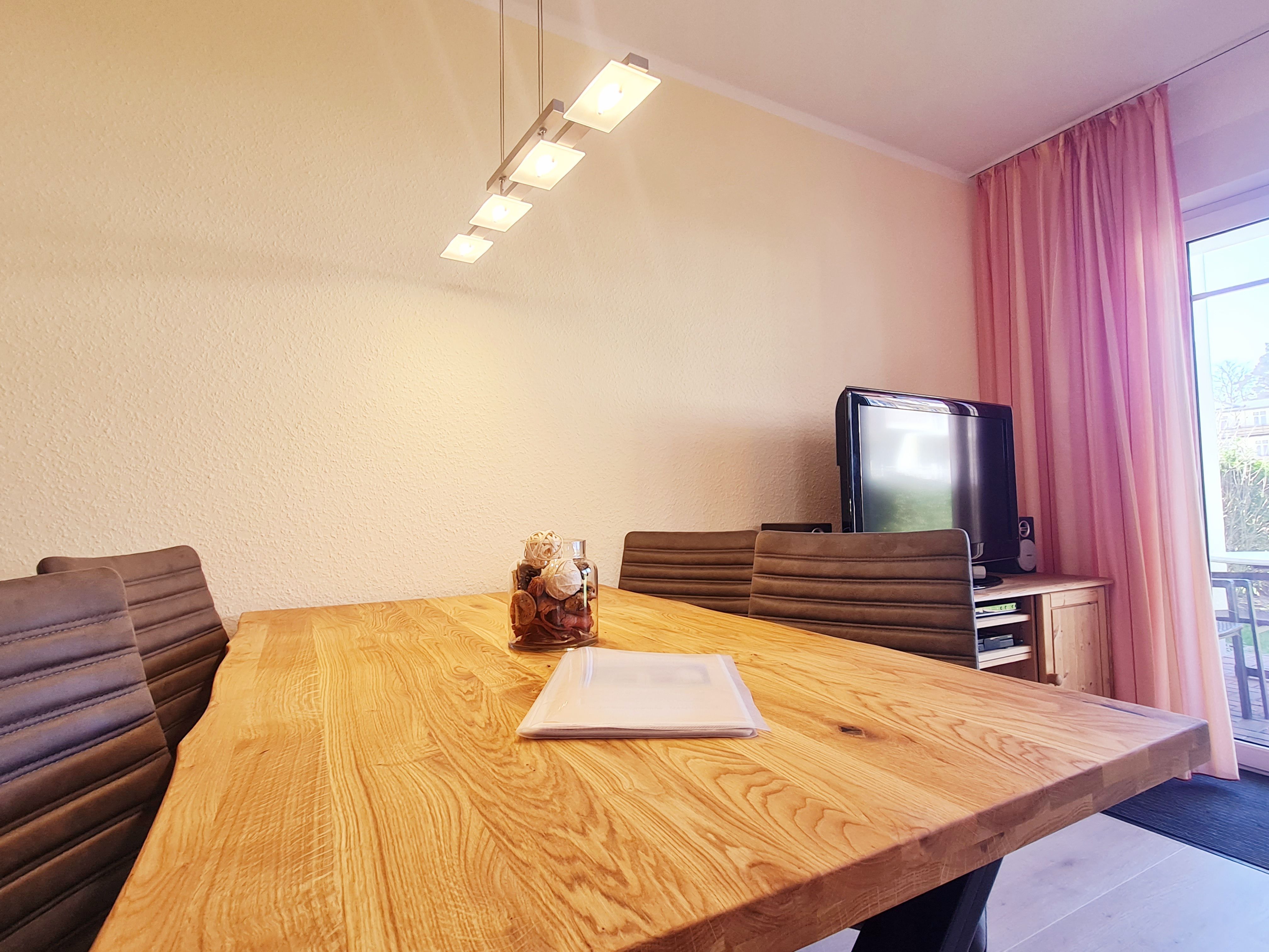 • Küche und Essbereich für 4 Personen offen zum Wohnzimmer, komplett eingerichtete Einbauküche mit Backofen, Ceranfeld, Toaster, Kaffeemaschine, Wasserkocher, Kühlschrank, Eisfach, Mikrowelle, Geschirrspüler