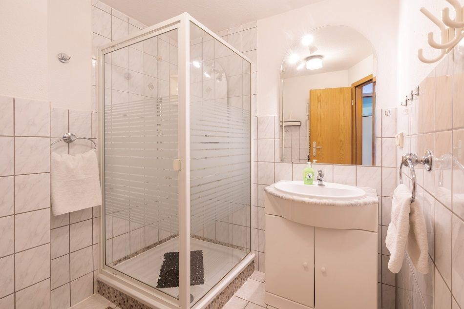 Das Badezimmer ist mit einer Dusche und WC ausgestattet, damit Sie sich nach einem Tag am Strand erfrischen können.