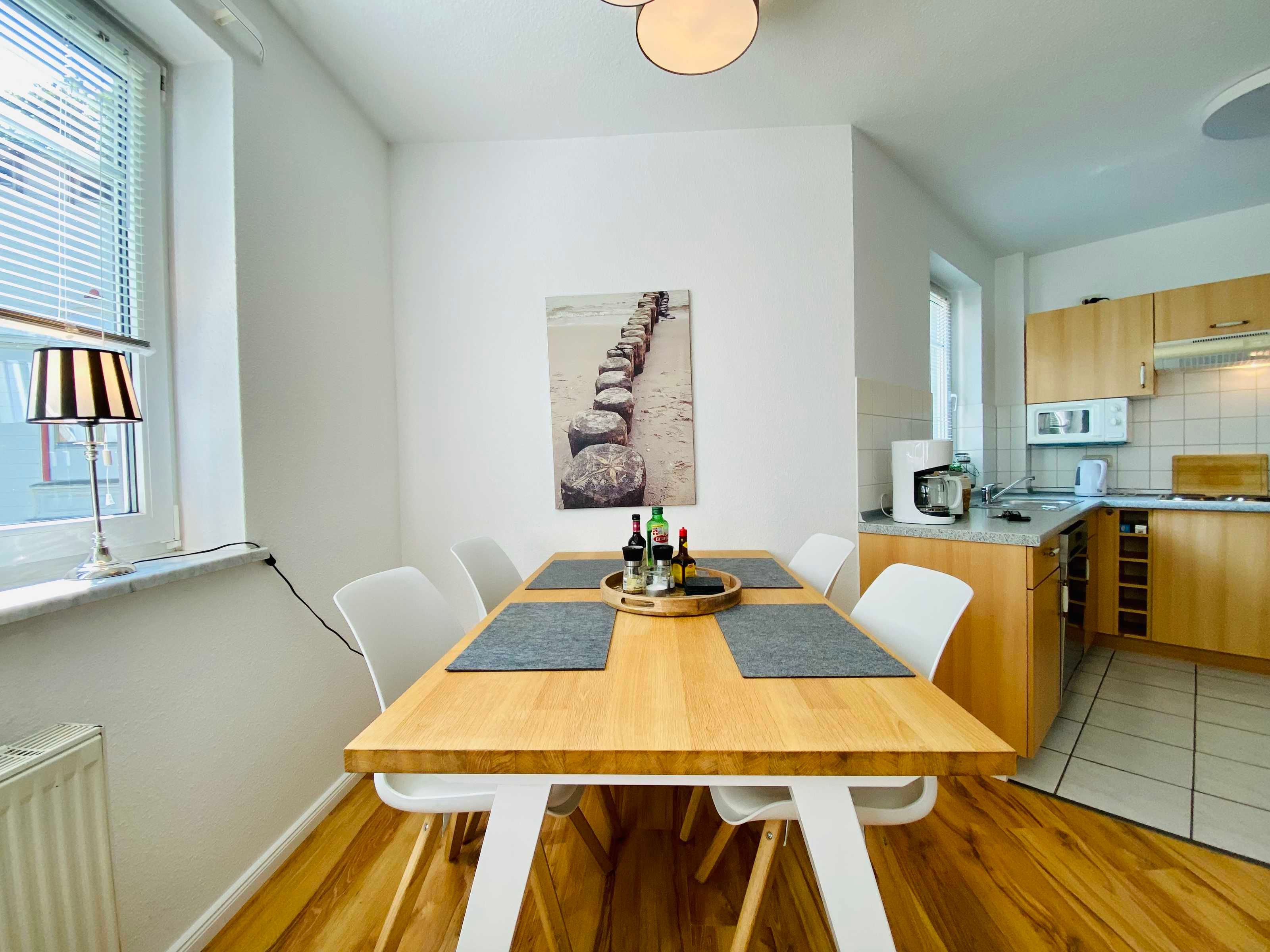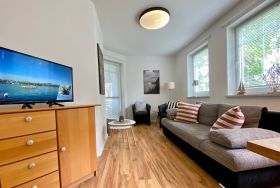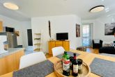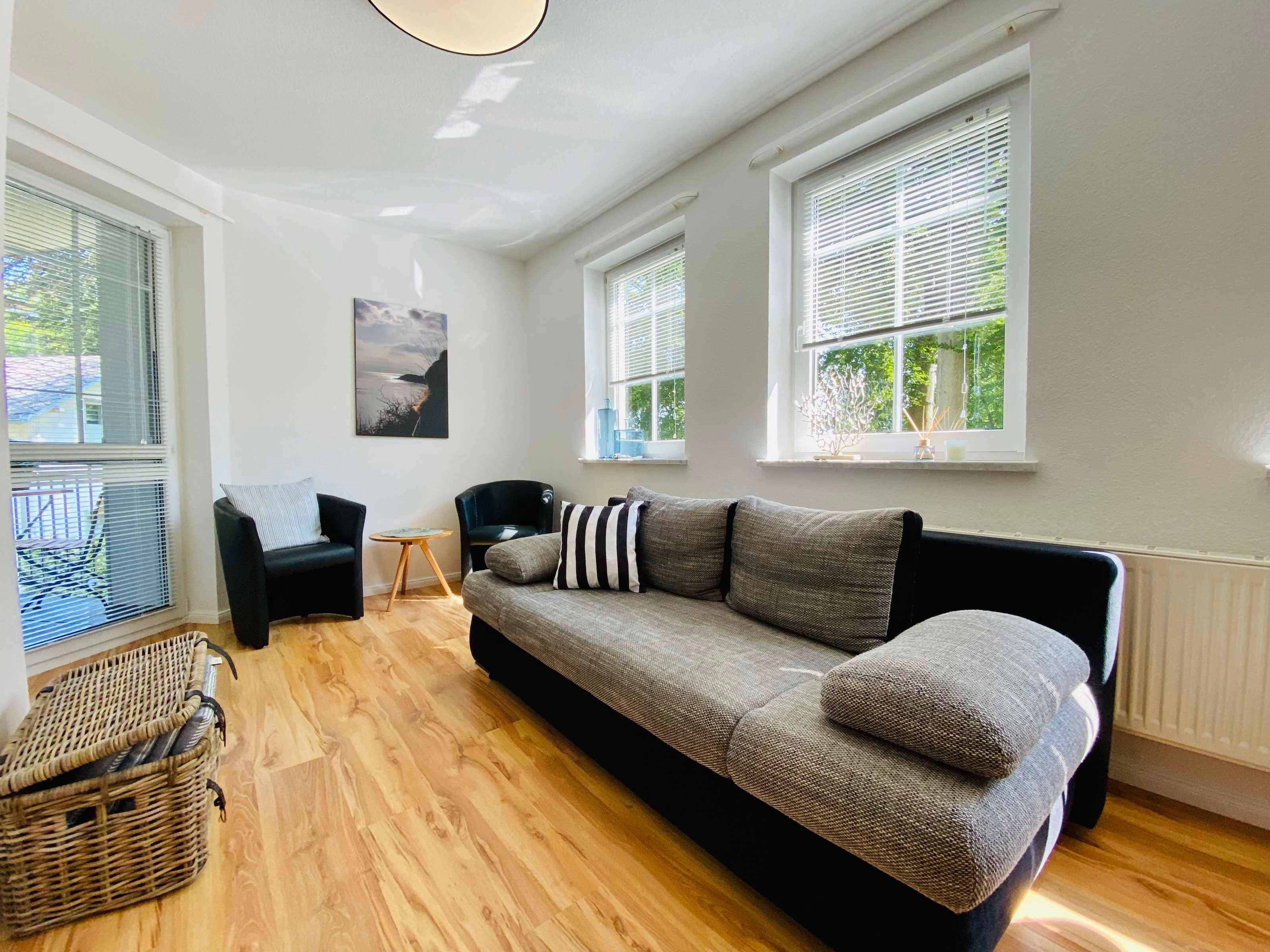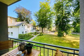 Die gemütliche 2-Zimmer-Ferienwohnung Marlene befindet sich im ersten Obergeschoss der Residenz am Buchenpark und ist bequem über das Treppenhaus erreichbar. Der moderne Wohnraum mit integrierter Küchenzeile lädt zum Entspannen und Genießen ein.