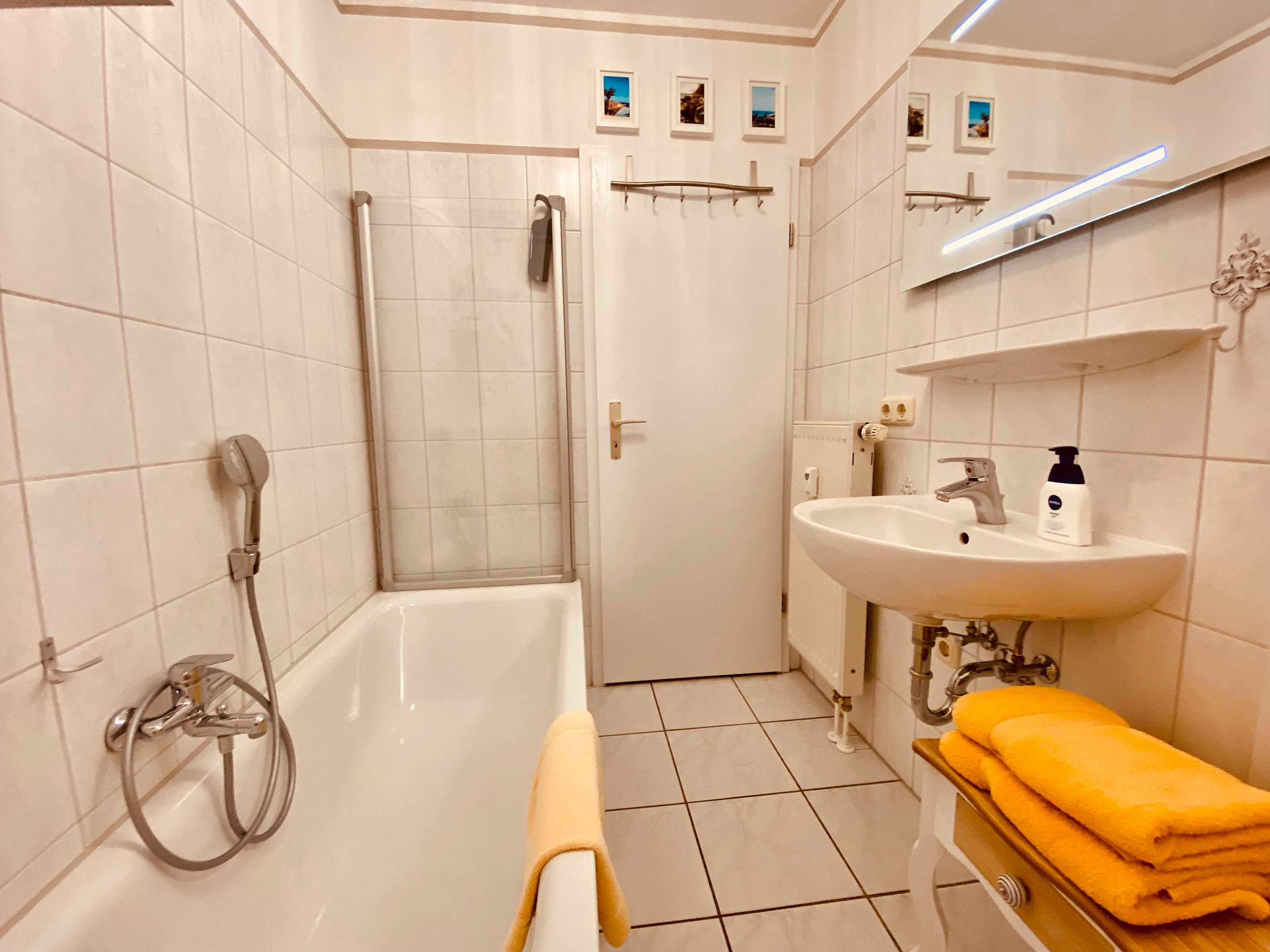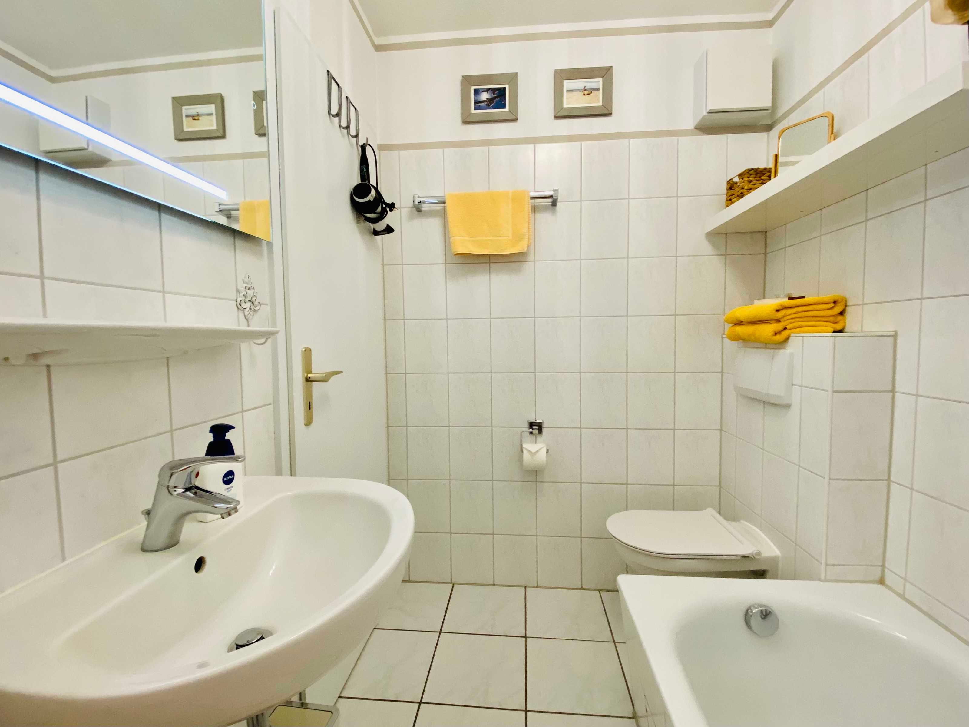 Das Badezimmer ist mit einer Badewanne ausgestattet. Eine weitere Schlafmöglichkeit bietet die Schlafcouch im Wohnbereich ideal für eine dritte Person. WLAN steht Ihnen selbstverständlich kostenfrei zur Verfügung.
