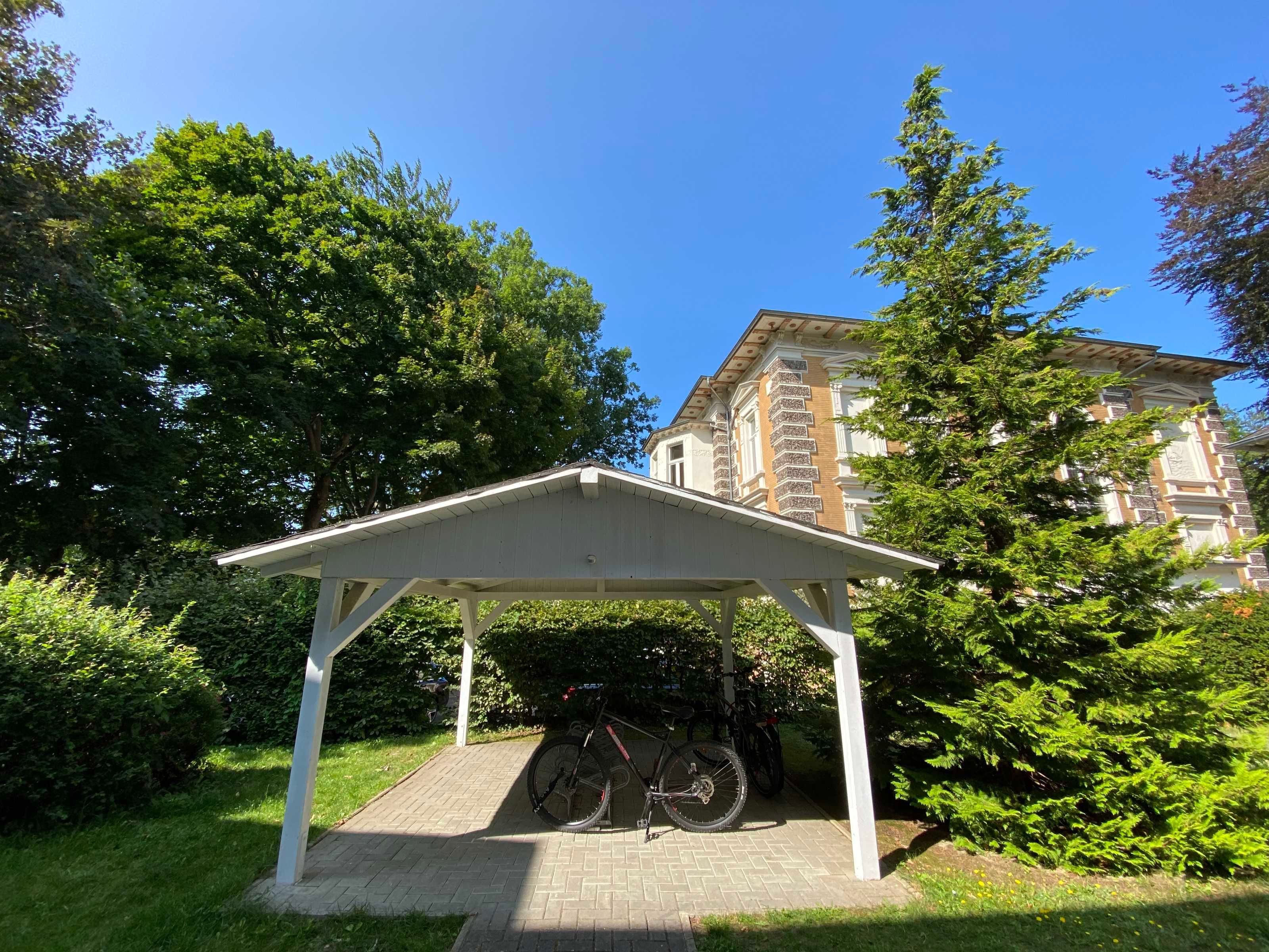 Das eingezäunte Grundstück bietet Ihnen einen PKW-Stellplatz sowie einen gemeinschaftlichen Fahrradabstellraum. Waschmaschine und Trockner können gegen Gebühr genutzt werden.