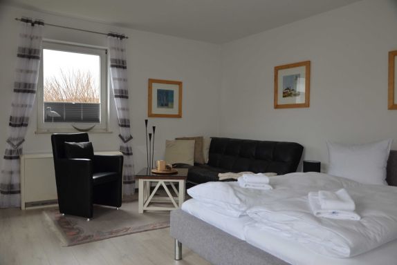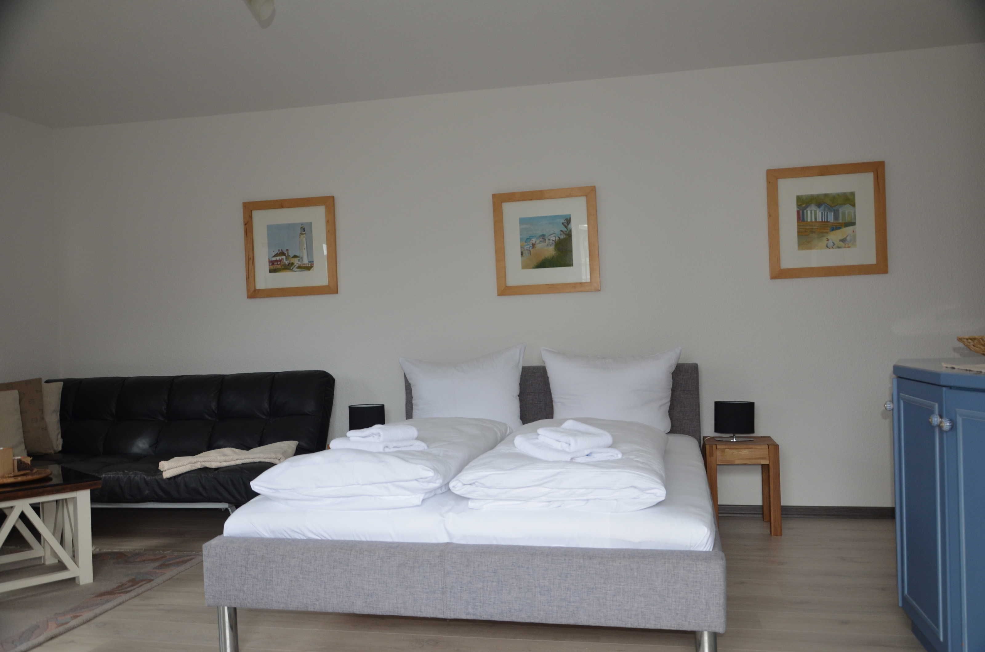 • Kombinierter Wohn- /Schlafraum mit Doppelbett, eine Couch die auch als Aufbettung dient, ein Esstisch für 2 Personen, Flachbild - TV, kostenfreies W-lan und Stereo-Anlage.