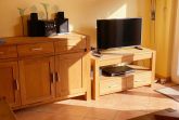 • Wohnzimmer: gemütliche Schlafcouch aus Textil 150 x 200 m, TV-Flachbild, Sideboard, Tisch, TV-Bank, Tisch,Cd-Radio, DVD-Player, Leselampe