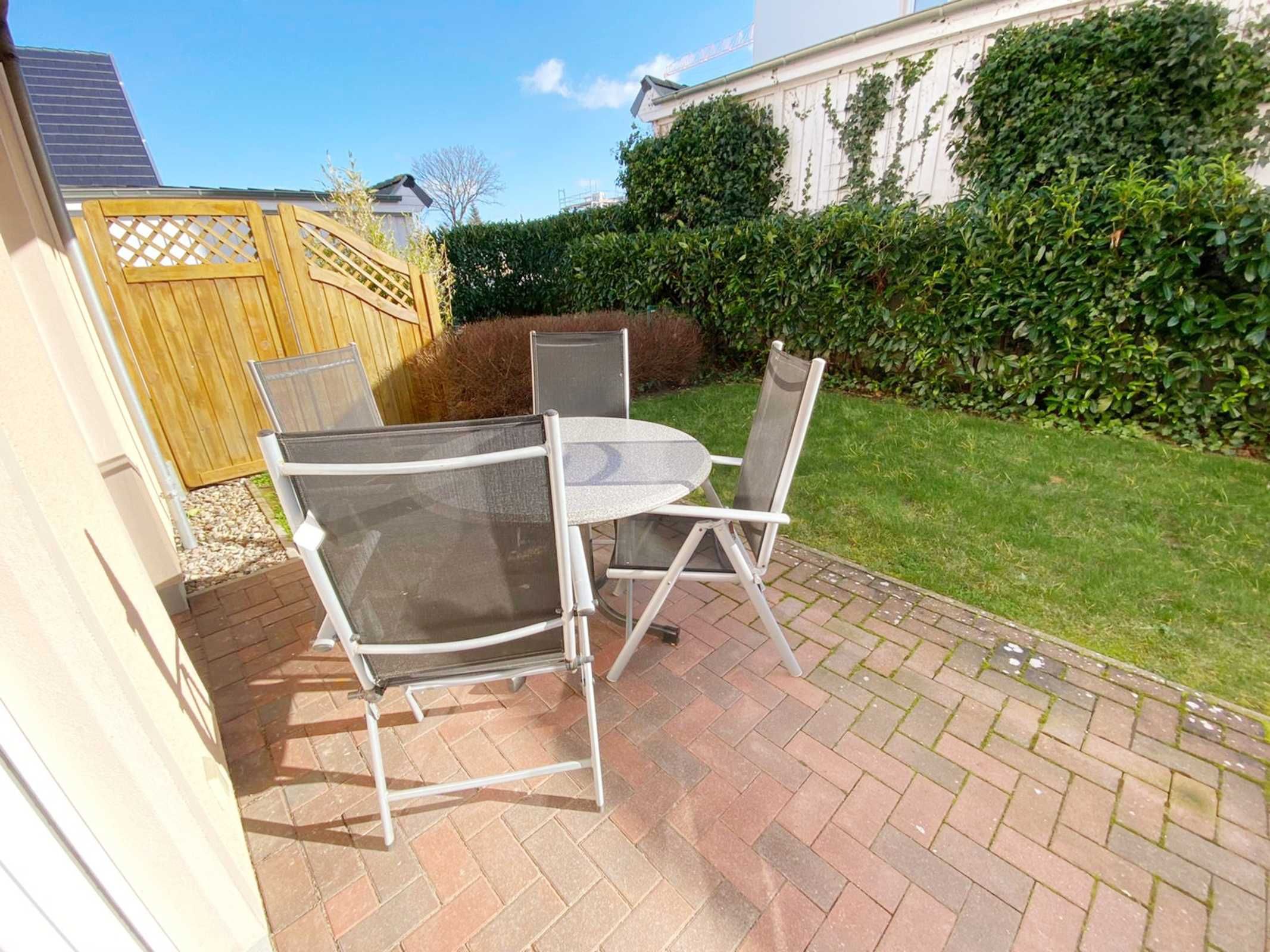 • Terrasse: Südausrichtung mit Gartenstück, großer Tisch, 4 Stühle, 1 Liege, Sonnenschirm