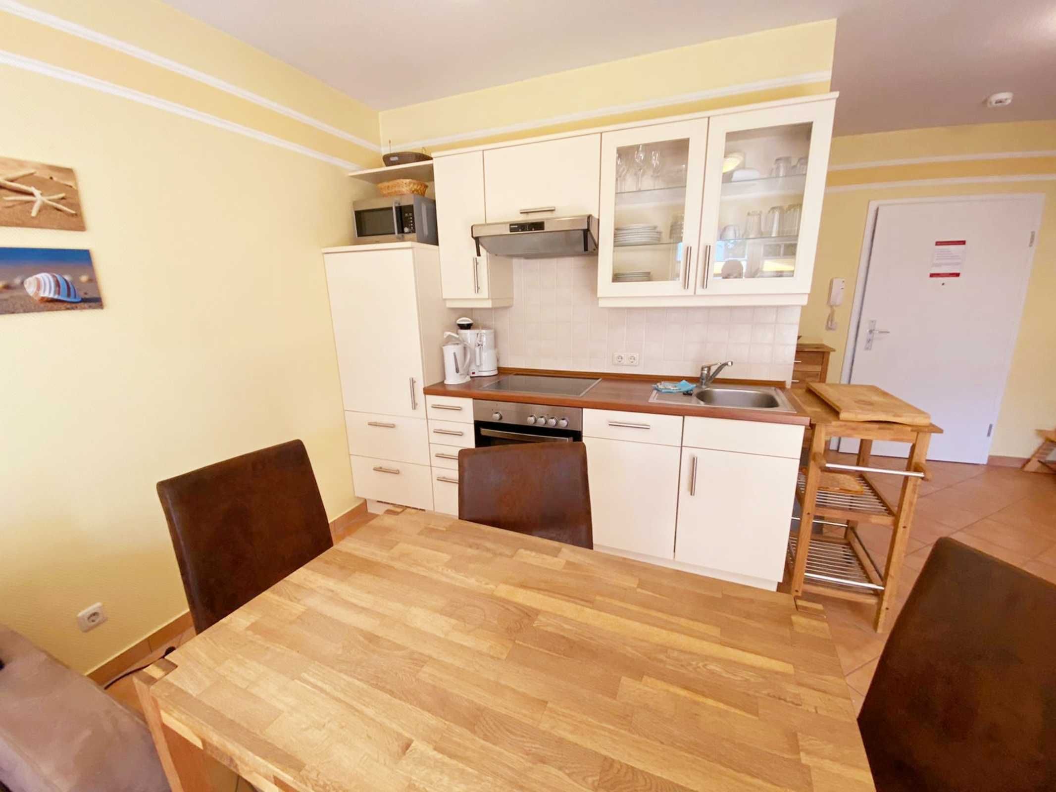 • Küche und Essbereich für 4 Personen offen zum Wohnzimmer, komplett eingerichtete