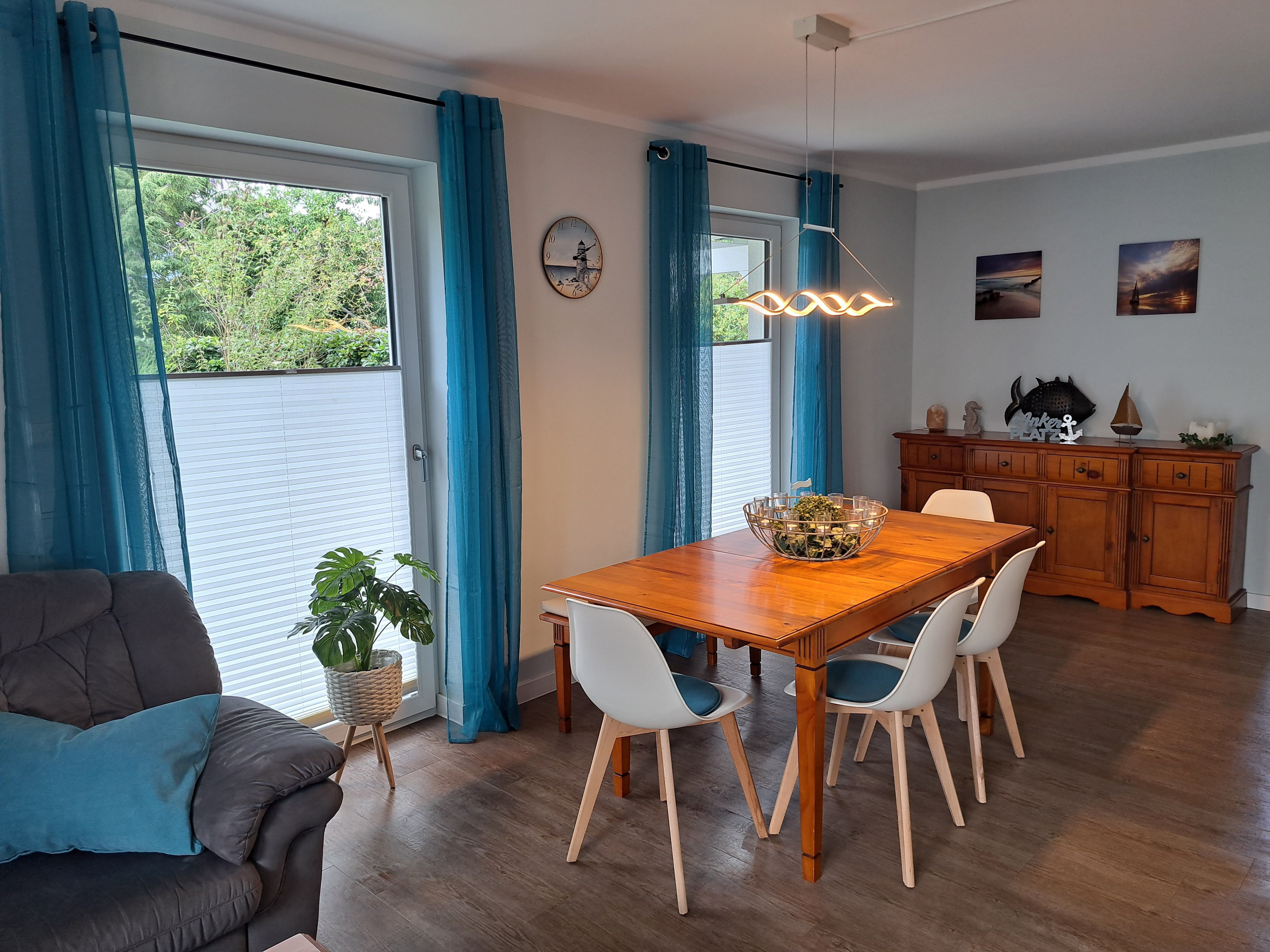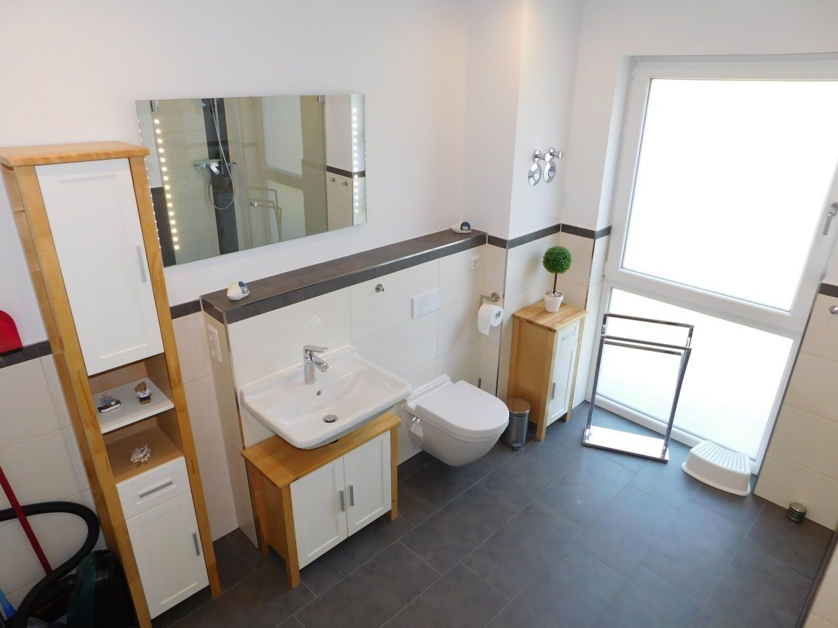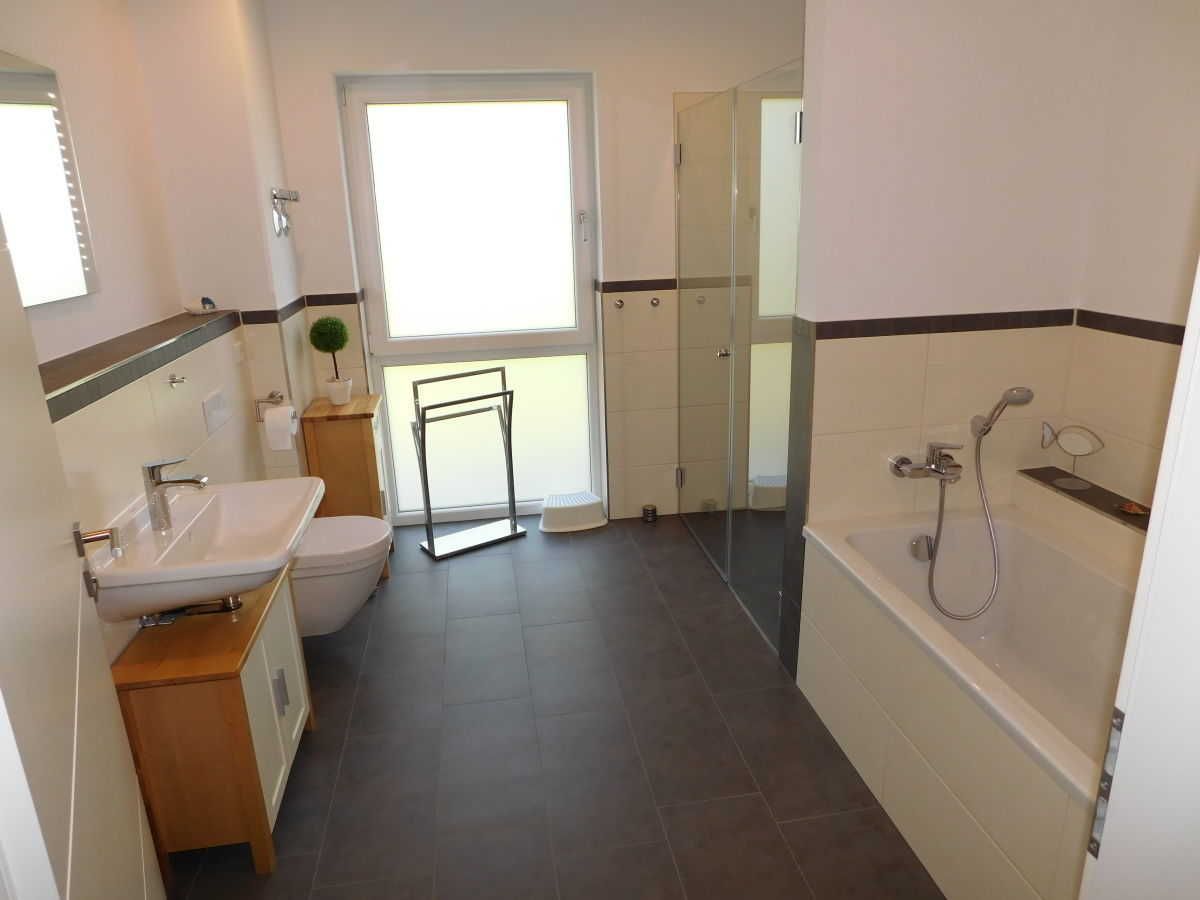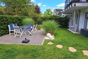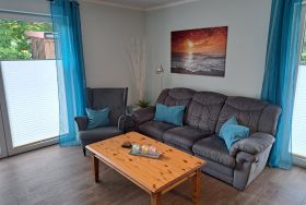 Unsere 84m² große, gemütliche Ferienwohnung im maritimen Landhausstil mit exklusiver Ausstattung befindet sich im Erdgeschoss mit eigenem Auto Stellplatz direkt vor der Haustür. Die Ferienwohnung verfügt über einen großzügigen Wohnbereich mit integrierter exklusiver Küchenzeile sowie einem komfortablen Essplatz. Insgesamt 2 Terrassen und ein eigener kleiner Garten umgeben von Obstbäumen laden zum Relaxen ein. Sie finden bei uns zwei helle, geräumige Schlafzimmer (u.a. mit hochwertigem Boxspringbett), die Platz für 2 bis maximal 5 Personen bieten. Unser großzügiges Badezimmer verfügt über eine ebenerdige große Dusche, eine Badewanne und ein WC. Für die kleinen Gäste ist ein Kinderbett, Kinderstuhl und separates Kindergeschirr vorhanden. Ein Hund darf auch mitkommen.